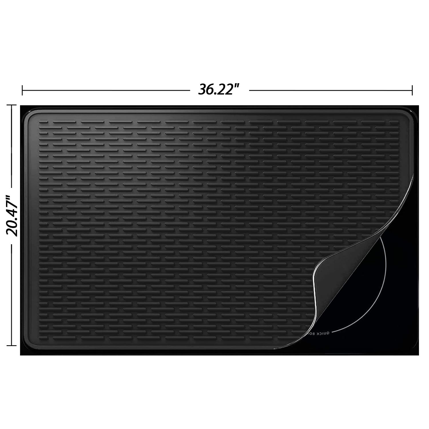 Kitchen Drying Mat:The unique design of wide raised line ridges increases air circulation, improves ventilation, and catches drips from dishes, glasses, fruits, and vegetables. The high edges and waterproof bottom keep the countertop dry and clean, making it an ideal kitchen drying mat.