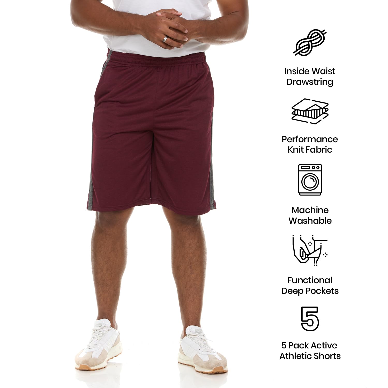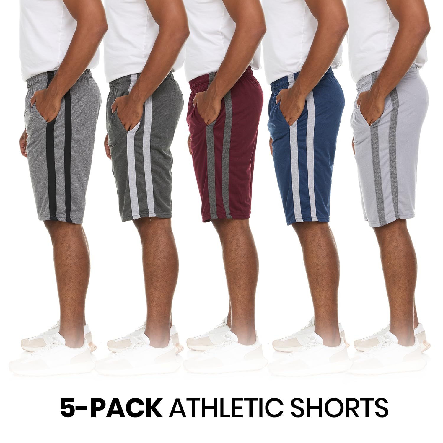 Description Are you searching for something modern and comfortable to wear at the same time? Are you Looking for the right durable and long-lasting sport knitted shorts that will allow you to easily move in all directions? If your answer is YES, then STOP SEARCHING because we have the perfect set of athletic basketball shorts. Why Our Shorts are So Special? Great Quality β Made from lightweight and breathable 100% Polyester quick dry-fit material to pull away the moisture during any activity. With knit sweat-wicking technology that works to absorb the moisture instead of soaking the shorts helping you to feel comfortable and focused on your game while keeping your skin dry and clean. Perfect Active Performance β Cool, light, and comfortable with side pockets to secure small essentials like keys, phone, or earphones that can't be safely stored during play. Great for workouts, basketball, running, football, soccer, biking, and all your favorite sporting activities. Easy Garment Care - Washing care is so simple and easy. All you have to do is to put them in your washing machine and wash it at a low temperature. Tumble dry low and remove promptly. Fantastic Gift Idea β These shorts for men makes a great gift for your favorite athlete, coach, and every person interested in the sport. Show someone who loves to look great and always search for something stylish and fashionable that you love him and think about him! Specifications: Material: 100% Polyester Lightweight, Cool & Durable Cationic Sweat-Wicking Knit Fabric Machine Wash Side Pockets & Adjustable Inside Waist Drawstring Season: All Seasons Suitable for All Activities PACKAGE INCLUDES: 3 or 5 x Pairs Basketball Shorts