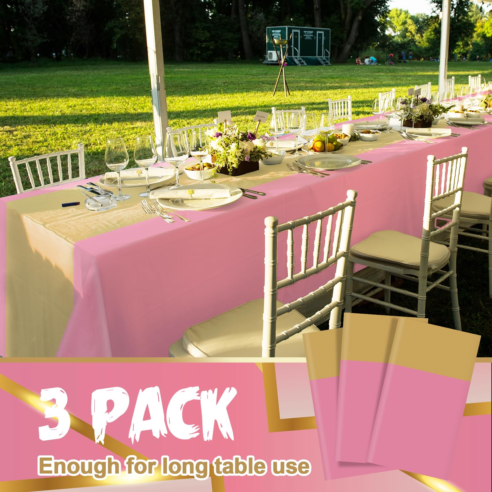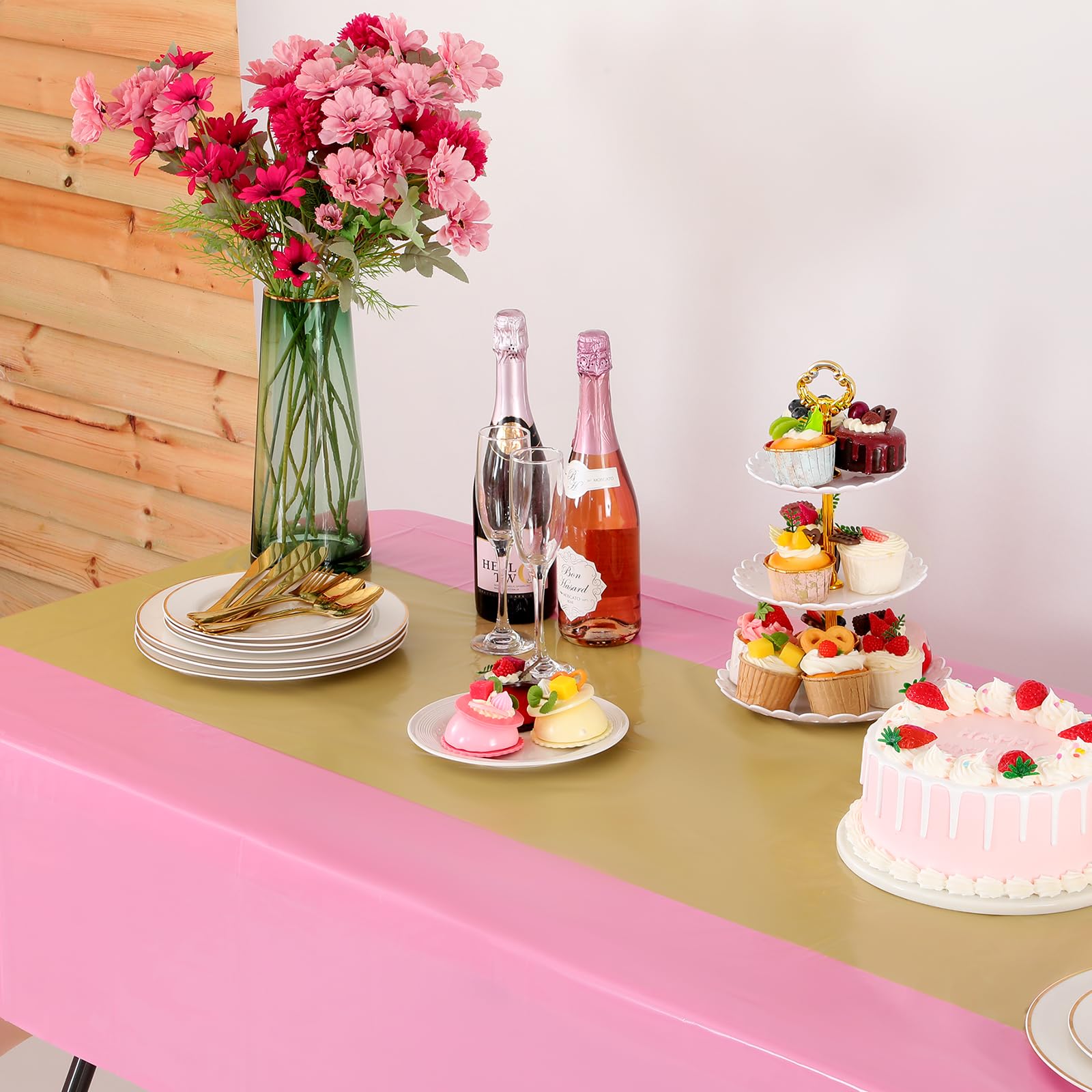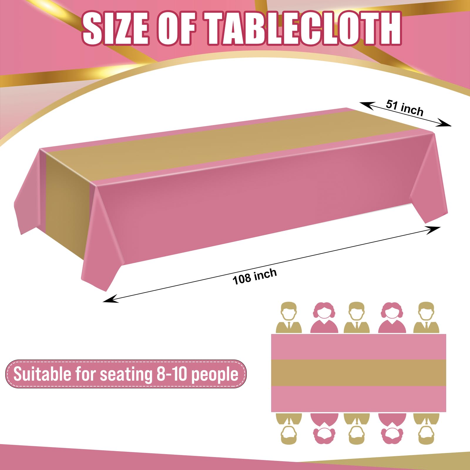 Elegant Design: the pink and gold design of these plastic table cloth disposable adds elegance to any dining experience, you can use them directly or cut them to decorate your wedding table or desk according to your needs and preferences; Your guests will be impressed with the sophisticated atmosphere they create