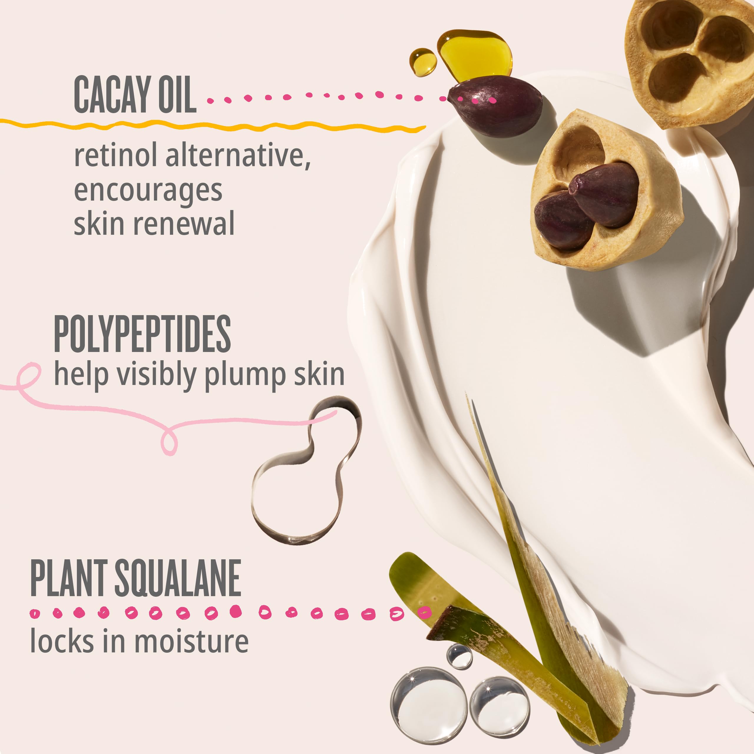 Key Ingredients: Cacay Oil: A retinol alternative that supports the cellular renewal process and promotes skin’s natural moisture levels, without the common skin-irritating side effects or increased sun sensitivity. Plant Squalane: Instantly plump the look of skin, deeply hydrate and prevent moisture loss while promoting suppleness and resilience.