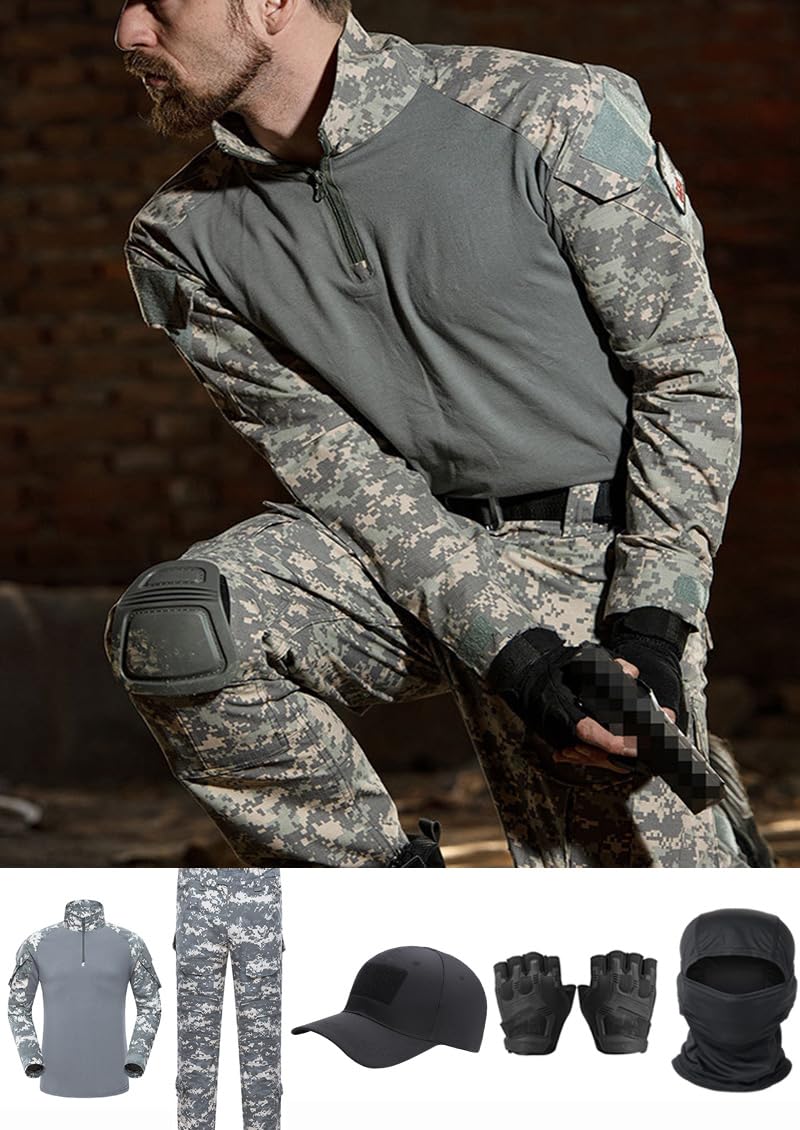 【Package Contains】Airsoft Como Pants + Shirt + Cap + Gloves + Balaclava Mask. A set of tactical gear.