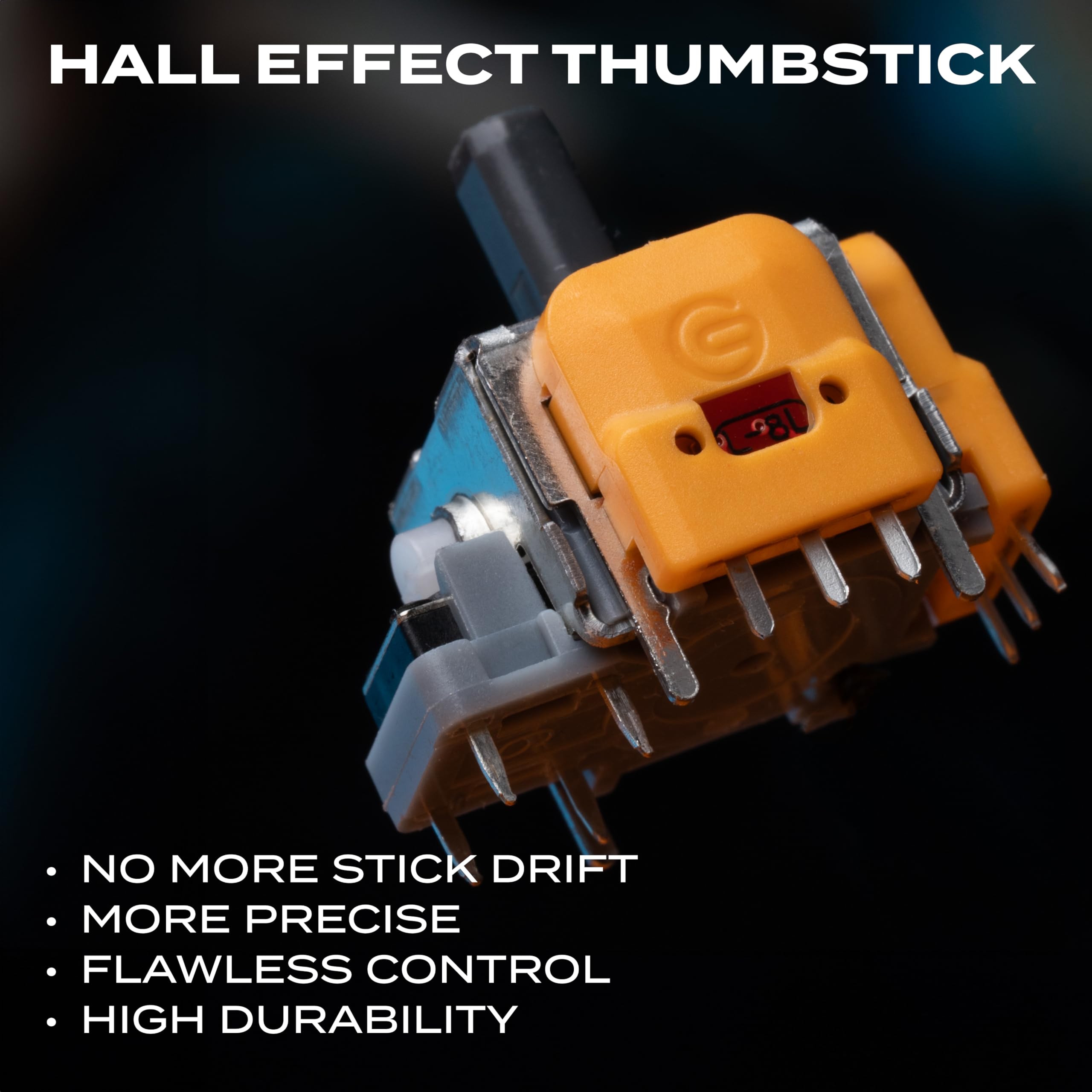 The new Hall Effect thumbstick eliminates stick drift and supports WASD or 360° analog movement (in compatible games). Customize dead zones, sensitivity, and cone angles, map eight directional zones, and enable analog smoothing. Can function as a mouse. Features easy calibration and a mid-click function.