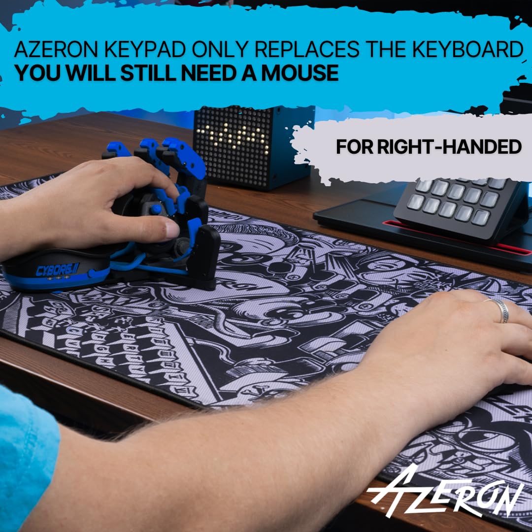 The new Azeron Cyborg II Gaming Keypad offers advanced adjustability and ergonomics. Its adjustable parts ensure a perfect fit. Designed for right-handed gamers, it replaces the keyboard for left-hand use while the mouse stays on the right.