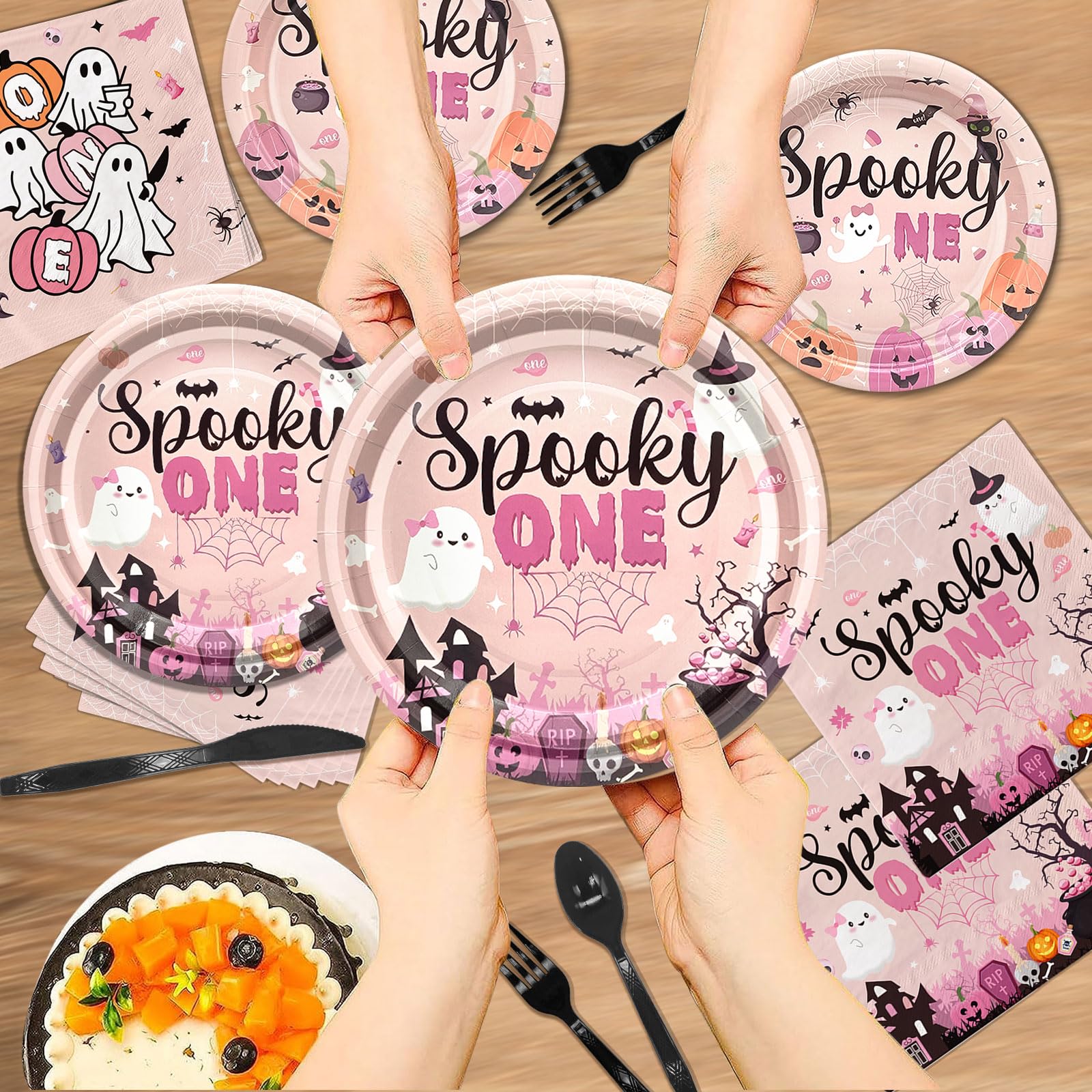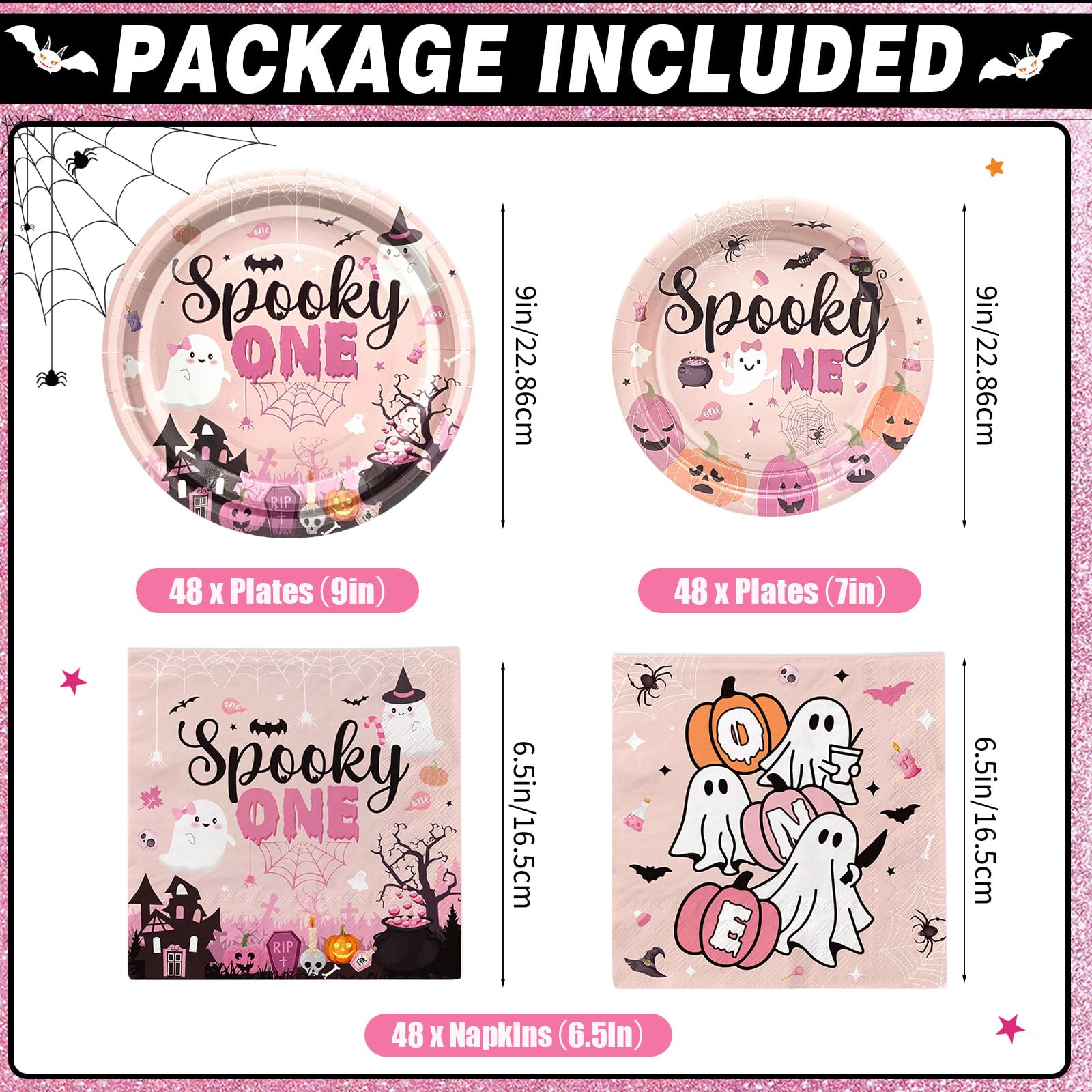 Package included: You will receive 48*Spooky One Birthday napkins, 48*7"Spooky One Birthday plates, 48*9"Spooky One Birthday plates with colorful letters “Spooky One"Fantastic design creates a cheerful atmosphere for your Spooky One Birthday party.