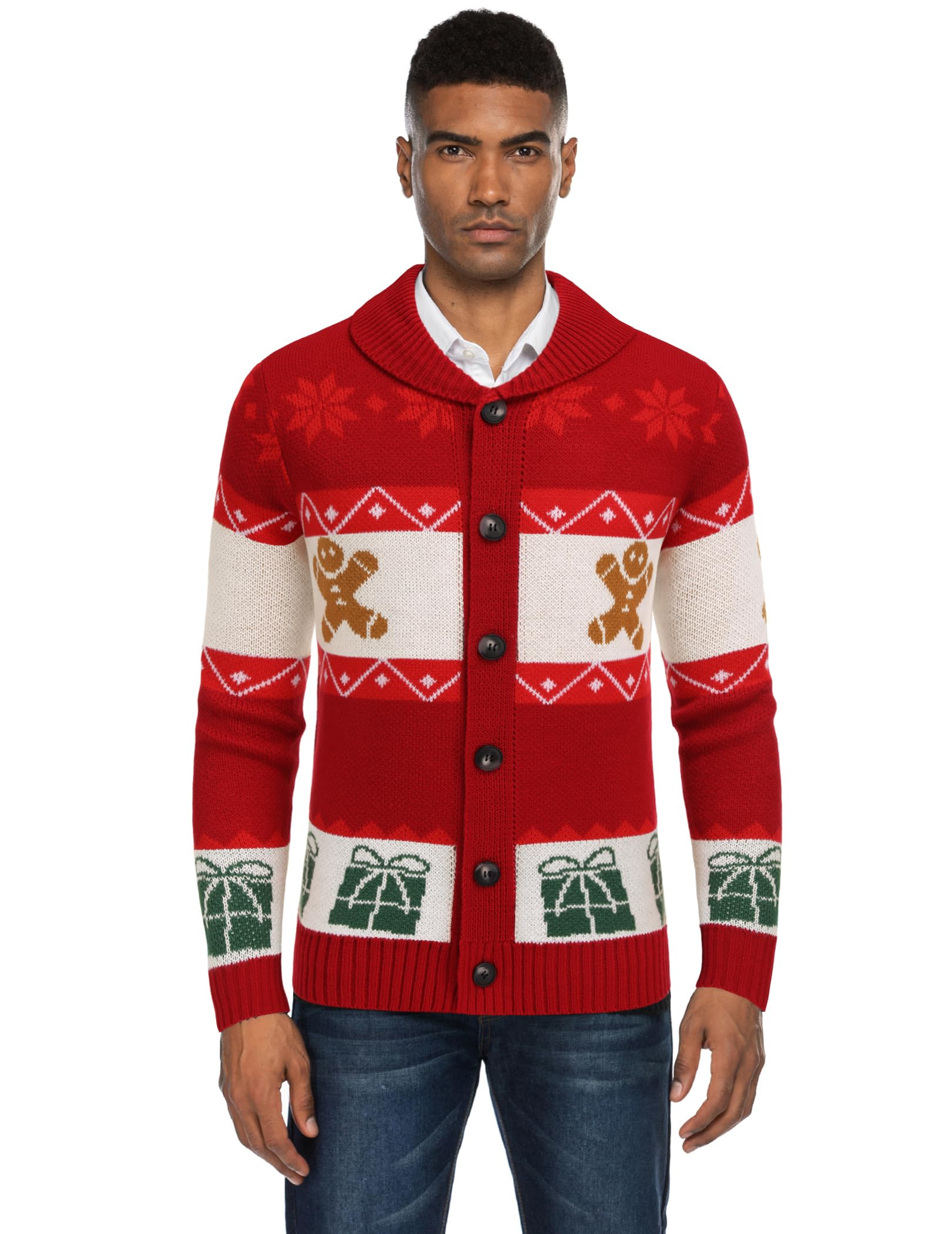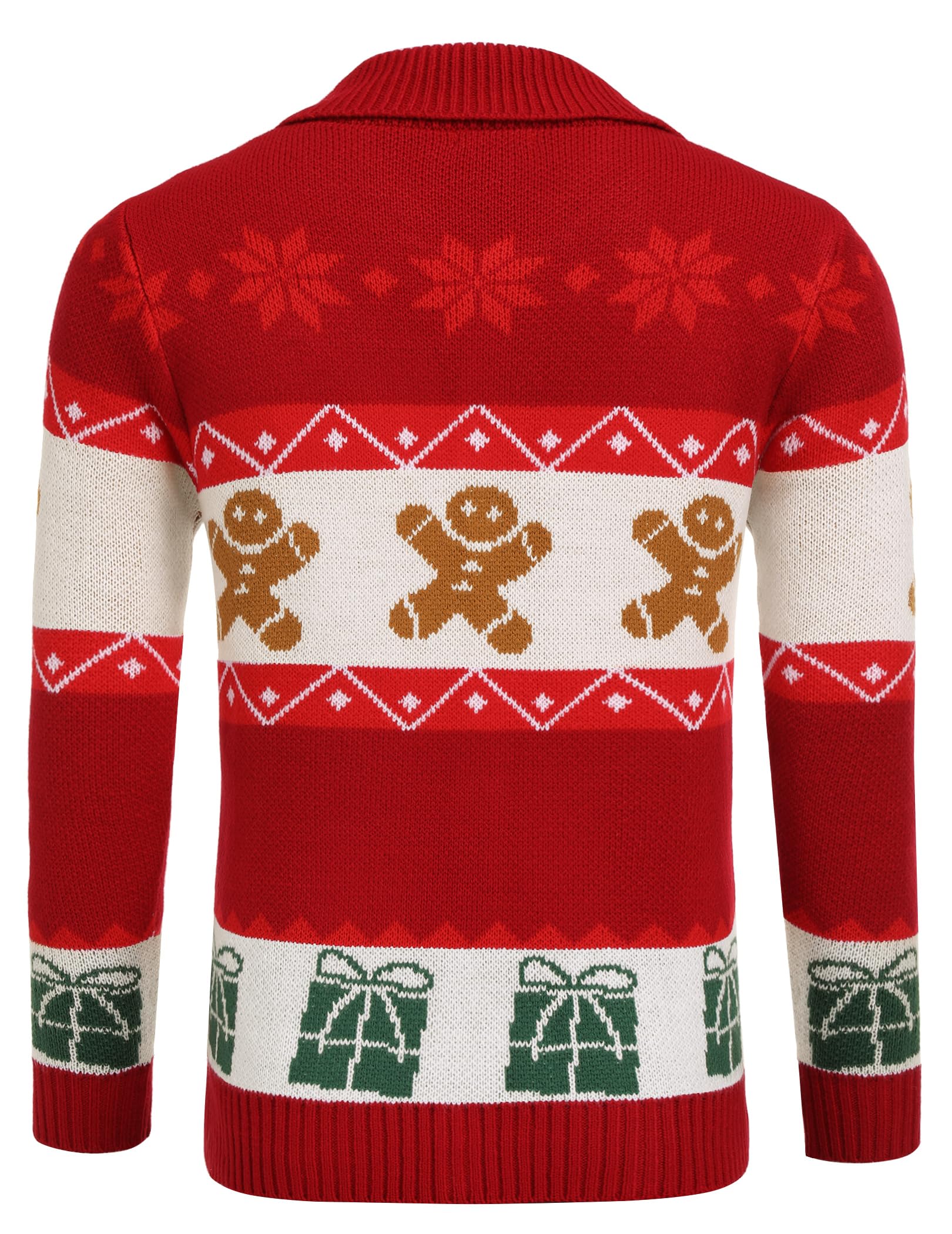 GREAT AS A GIFT - Gingerbread, snowflake and Christmas gift prints are the most classic Christmas elements - which is why this cardigan is the perfect present for your dad, husband, son, or friend. Give this thoughtful gift for your loved one's next birthday or for Christmas.