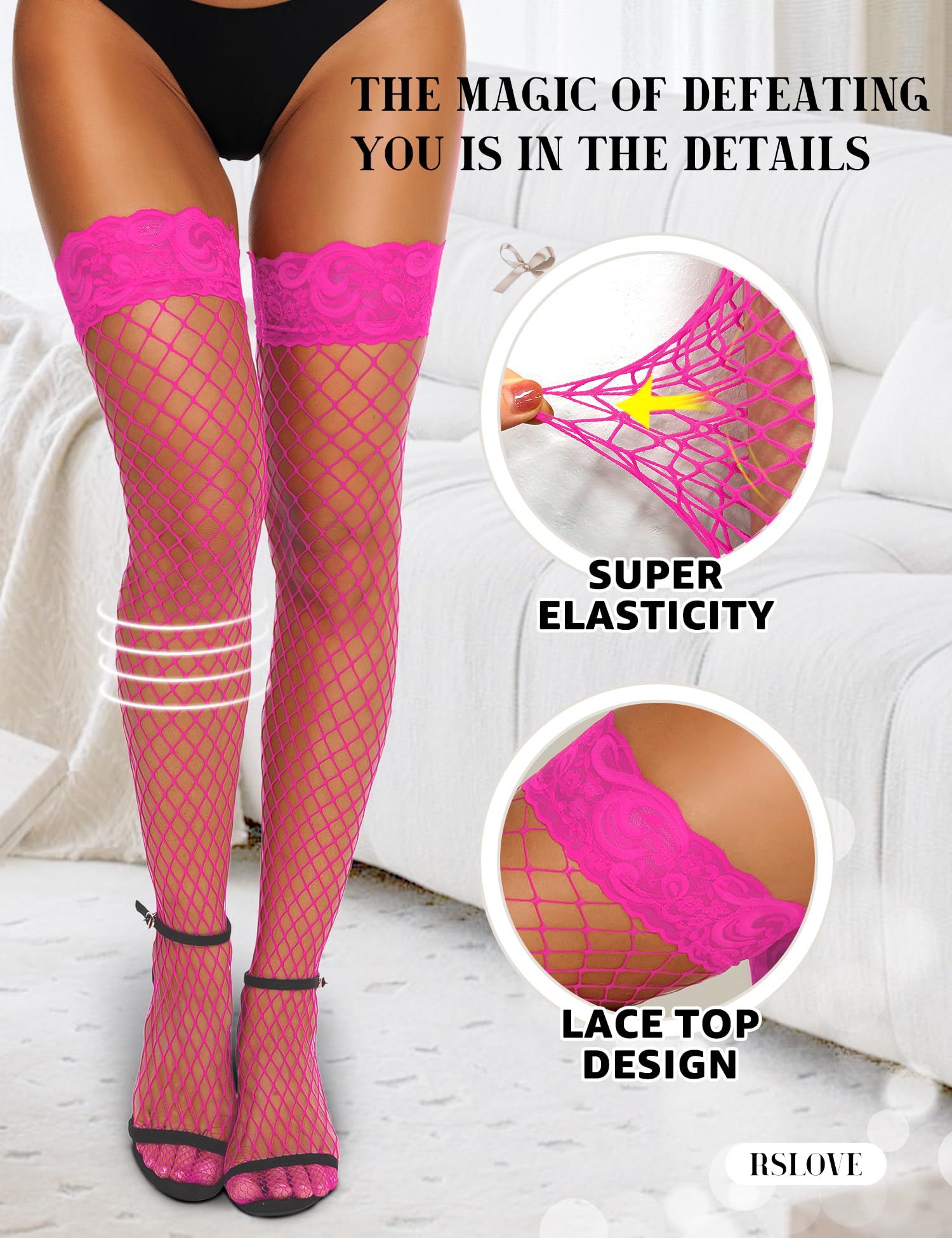 Durable: Experience durability at its finest with our RSLOVE laced stay-up fishnet thigh highs, designed to stretch and accommodate various body types while providing all-day comfort. Elevate any outfit or occasion with these special stockings that add a unique flair.