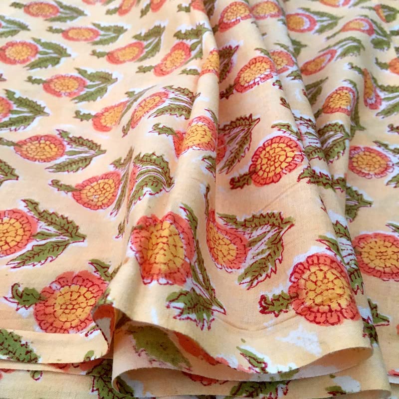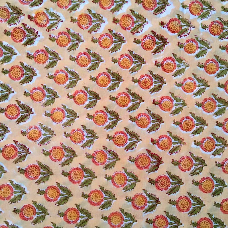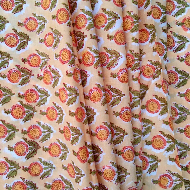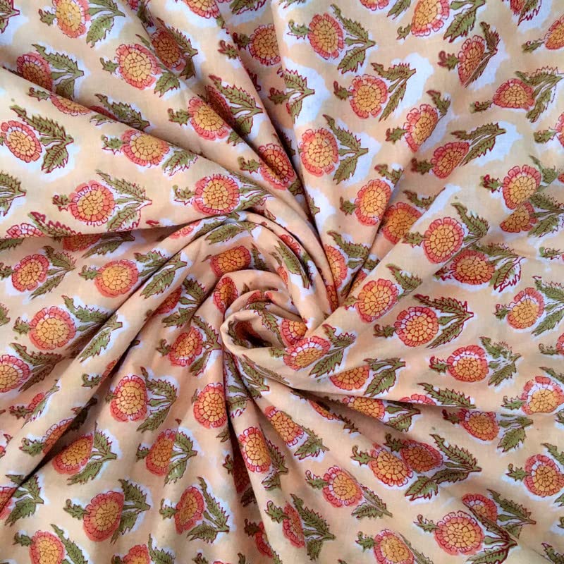 FABRIC WIDTH: 44" And LENGTH: 3 Yards. , Color: Peach. 100% Soft Cotton medium weight, Indian Wood Hand block fabric.