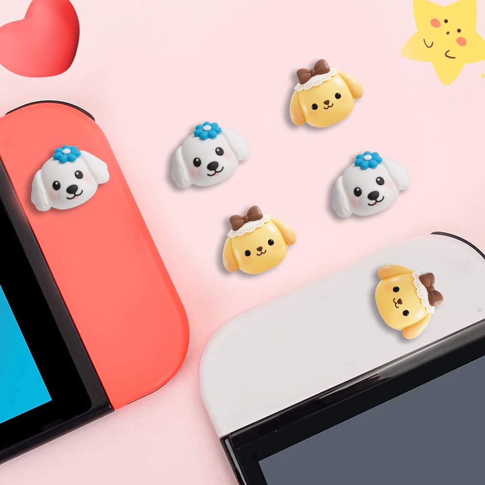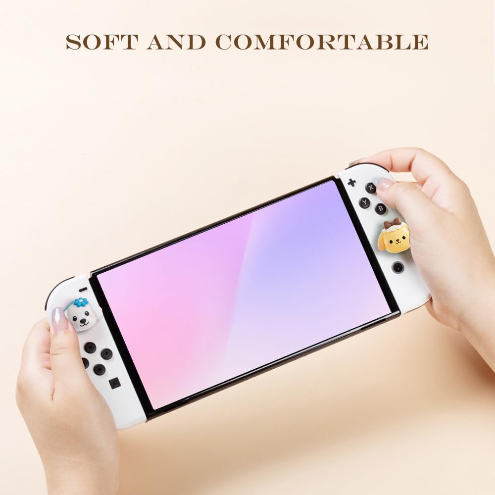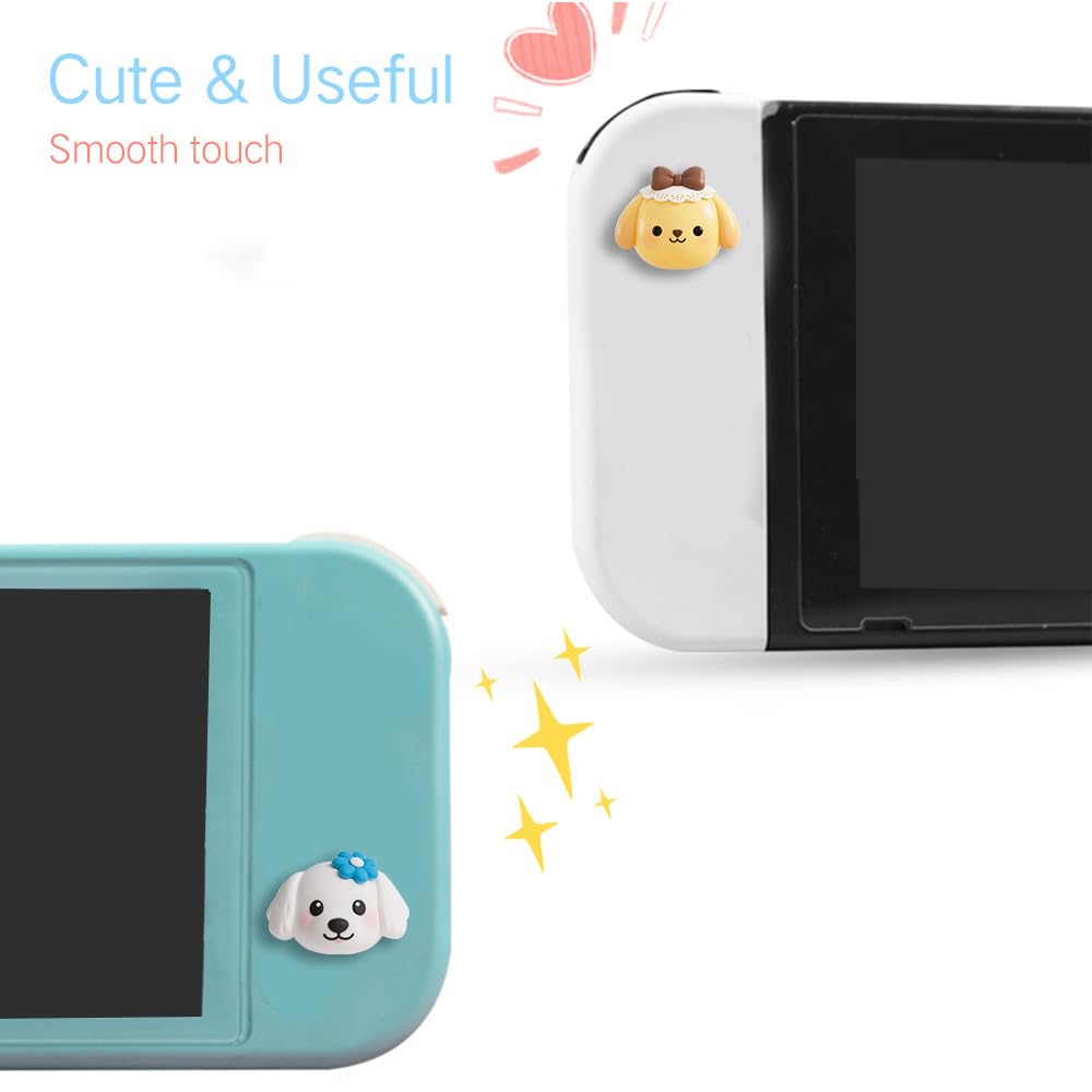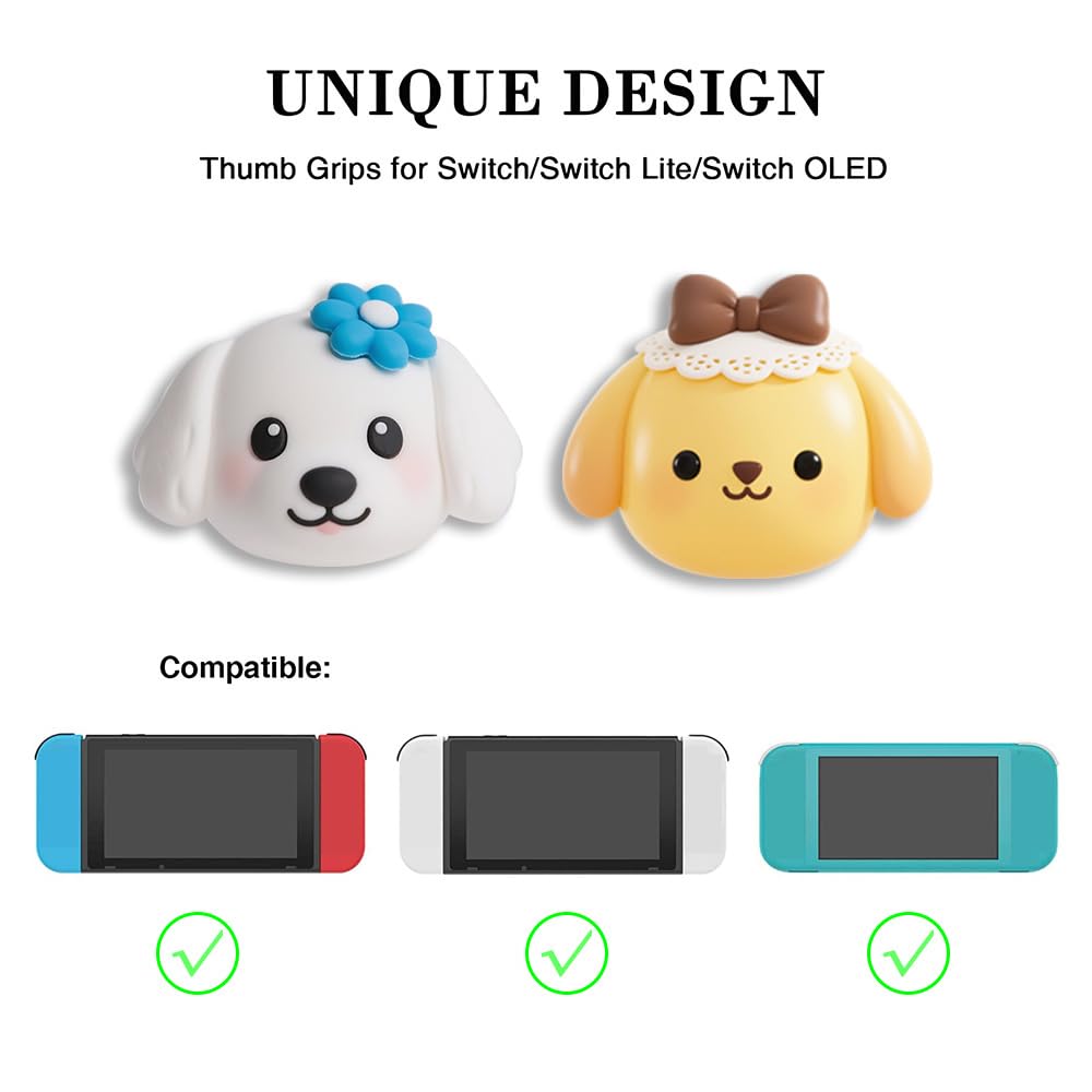 PERFECTSIGHT Cute Thumb Grip Caps 4PCS Compatible with Nintendo Switch & Switch Lite,Soft Silicone Cover for Joy-Con Controller (Dog) Tired of the boring standard colors of game joysticks? Do you want to add personality and protection simply and quickly? PERFECTSIGHT joystick caps will meet your needs and bring you a new gaming experience. Blue and Yellow Dog Joy Con Caps Features: Cute lovely design, eye-catching decoration-- Cute Dog design makes your Switch & Switch Lite and Switch OLED more eye-catching. Perfect non-slip design -- Increase the friction between finger and controller. Prevent your fingers from slipping and provide more accuracy and sensitivity. This Silicone thumbstick cap is specially designed for Nintendo Switch & Switch Lite & Switch OLED Joycon, which can provide effective protection for your analog sticksEasy Installation -- Just turn the grips inside-out and pop over the sticks. Specification: Material: Silicone Compatible models: Switch & Switch Lite Ideal present for switch players -- Our cute thumb grip caps set is with lovely box packing, which is a great present for girls, friends, children and all age switch games lovers. Package include: 4* Thumb Grips Caps How to install PERFECTSIGHT Thumb Grips Caps? 1. Lift up the bottom edge of the thumb grip completely. Align on the joystick. Align and Release the caps. Please note: Check if the caps wrap the joystick completely to prevent them from pop off when you playing. Warm Note: Warm Note: This joystick cover is not suitable for ps4/5, not for Switch Pro or for Xbox One controller. If you find any problem.