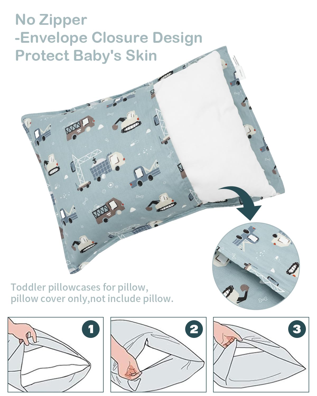Adorable and Stylish Design - Envelope closure design,easy to put on and take off. Protects kids pillow from dust, drool or dandruff. Toddler pillow covers are no zipper design,let's create lots of sweet dream together with your little ones.We will update more toddler pilowcases with vibrant color, adds fun and vitality to the toddler bed set.
