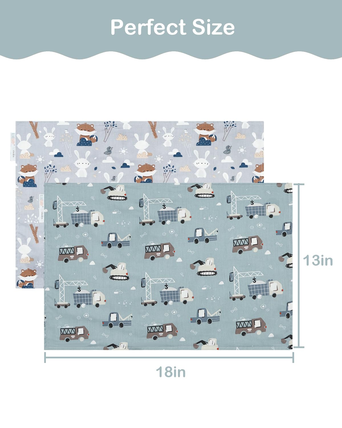 Perfect Size -pillowcase fits 13x18 inches pillows,also loose fits 12x16 inches toddler pillows, travel pillows,neck pillow,toddler pillow,knee pillow or other small pillows.Unisex boys or girls.Perfect for travel,pre-school naps,bedtime.Pillowcase are special designed for 2 to 6 year olds as their first pillow.