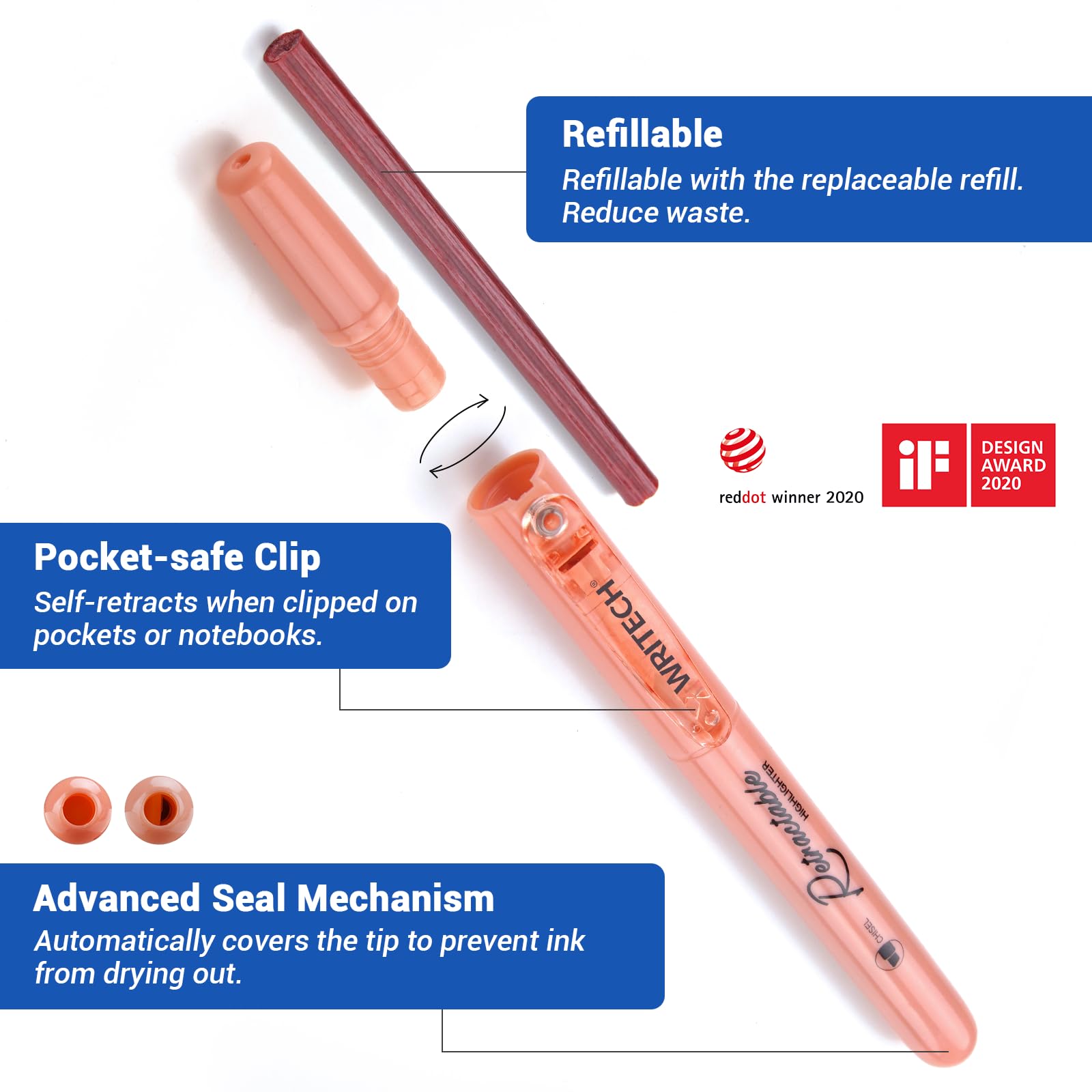 The nib automatically retracts when you clip the highlighter on your book or pocket, preventing stains or ink leakage when forget to retract the nib.