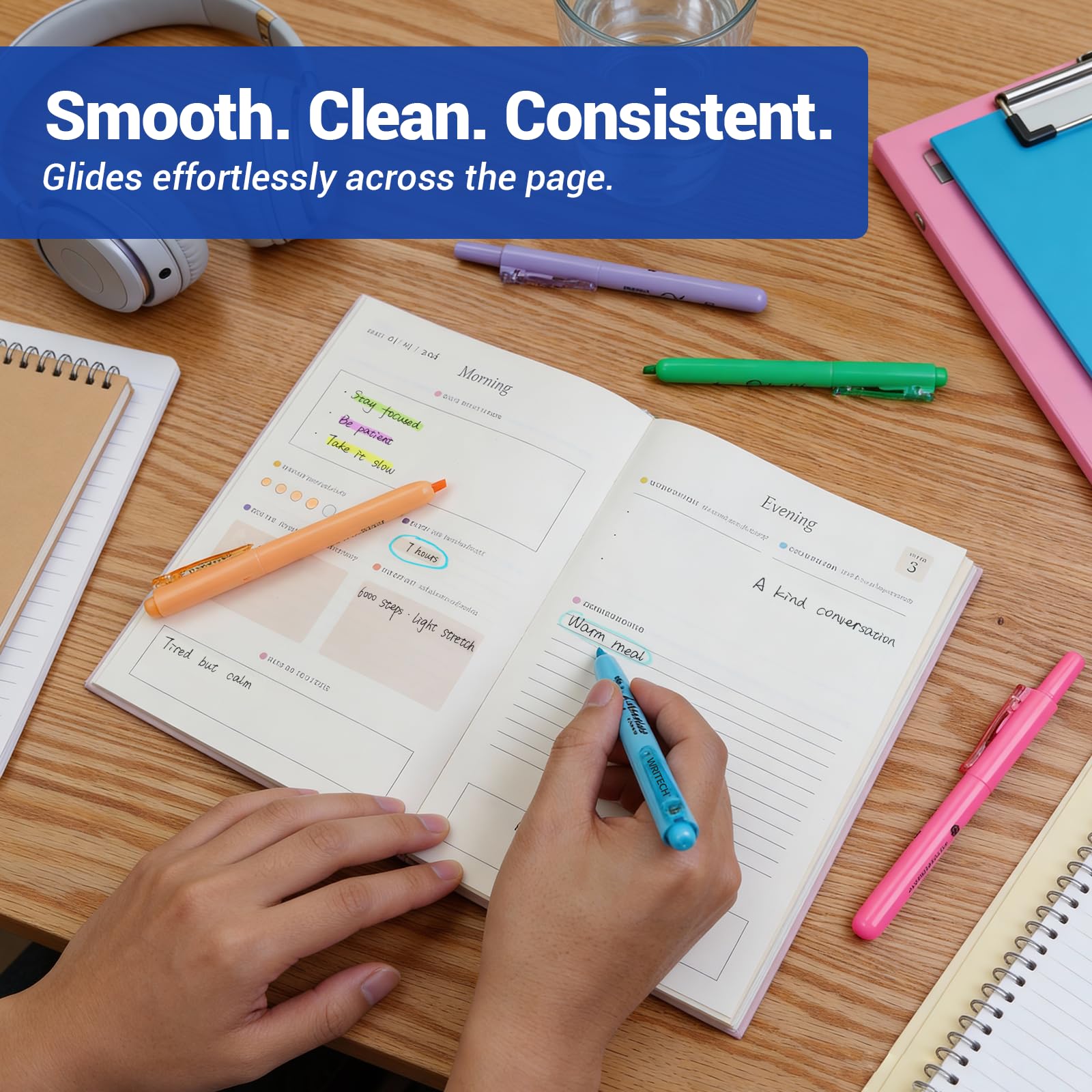These aesthetic highlighter pens feature vivid, fade-resistantance ink and color won't bleed through most paper.
