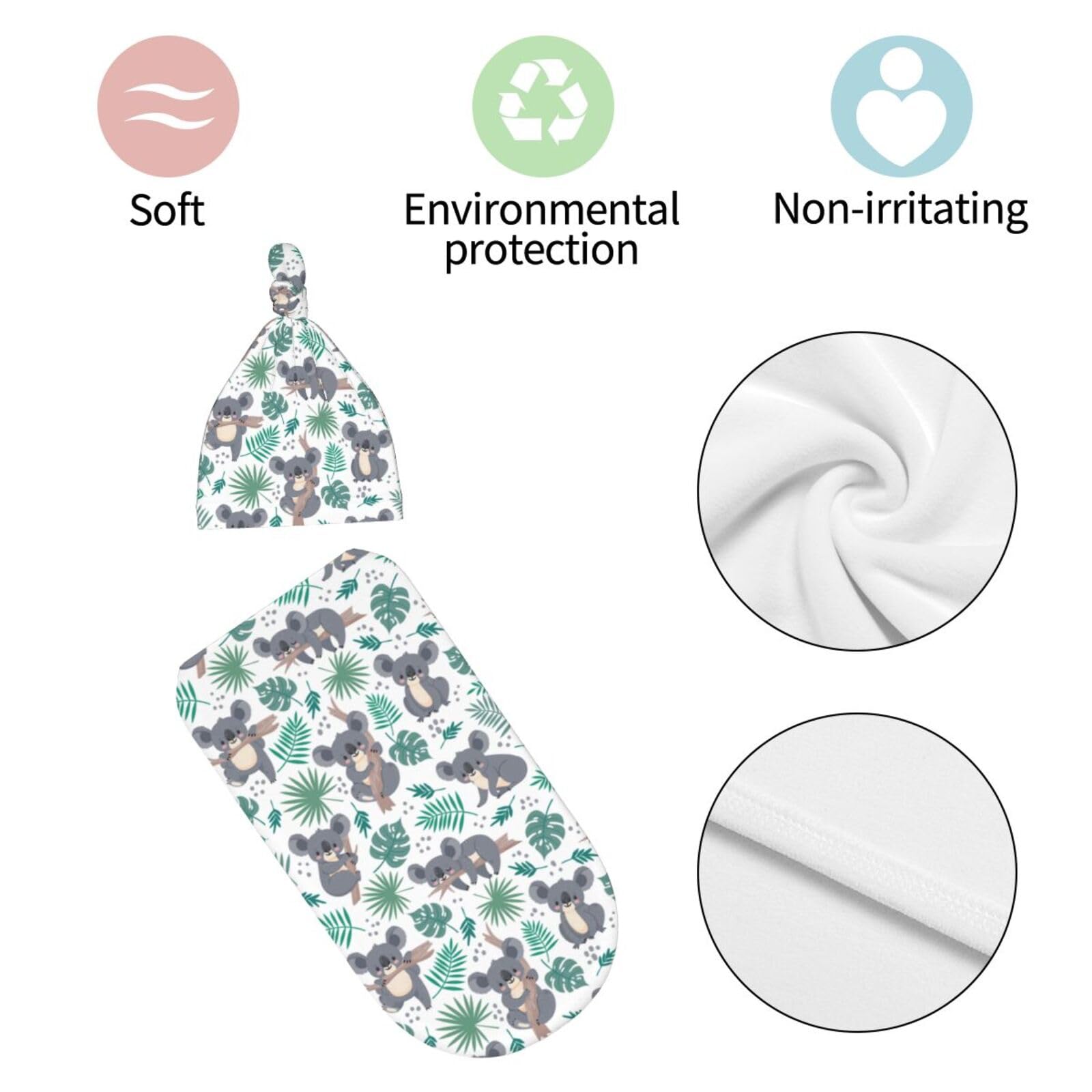 SWADDLE SET : The Koala swaddle bag has no zipper or hidden button to protect the baby's delicate body.By swaddling babies like little burritos, it'll create a snug and familiar feeling to calm fussiness, you can rest easy