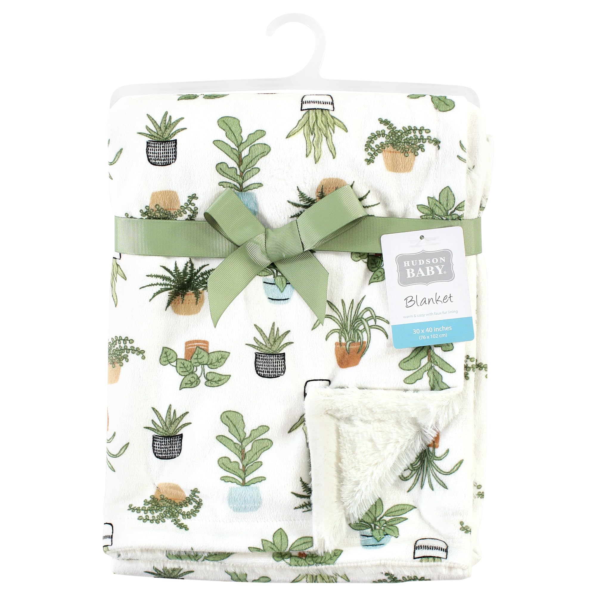 Hudson Baby plush blanket with furry binding is a super soft, warm and cozy baby blanket to add to your little one's nursery. Measuring 30x40 inches, our blanket is soft and gentle on baby's skin and great for everyday use. Our blanket is great for snuggle and sleep, but also as a stroller cover, car seat blanket and more.