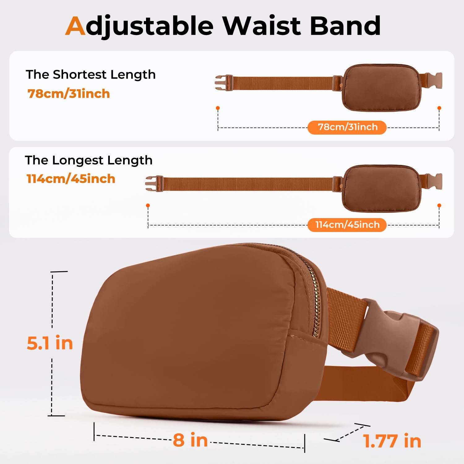 PRODUCT SIZE: The Everywhere Belt Bag Size:8.2"x 5.1"x1.77". Adjustable Strap: 32" to 51.25" - ideal for carrying phones up to 6.7",sunglasses,passports,tickets,and cosmetics.Mesh pockets keep items visible and tidy.suitable for teens/adults/girls/boys