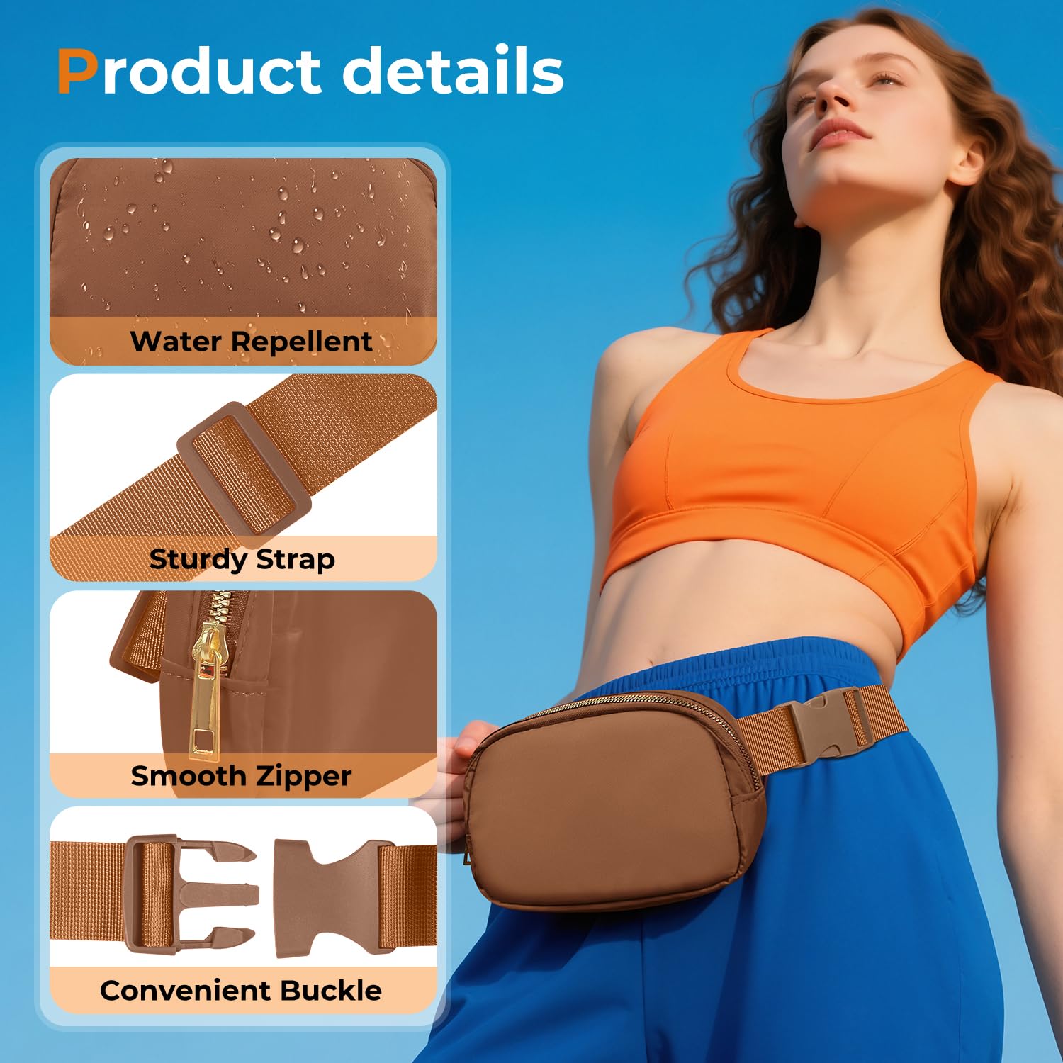 INSTANT ADJUST & GO: Lightweight+ Nylon Water Resistant with Reinforced Zippers. Switch from crossbody to waist pack in seconds with no-tangle straps. smooth-gliding zippers survive daily abuse