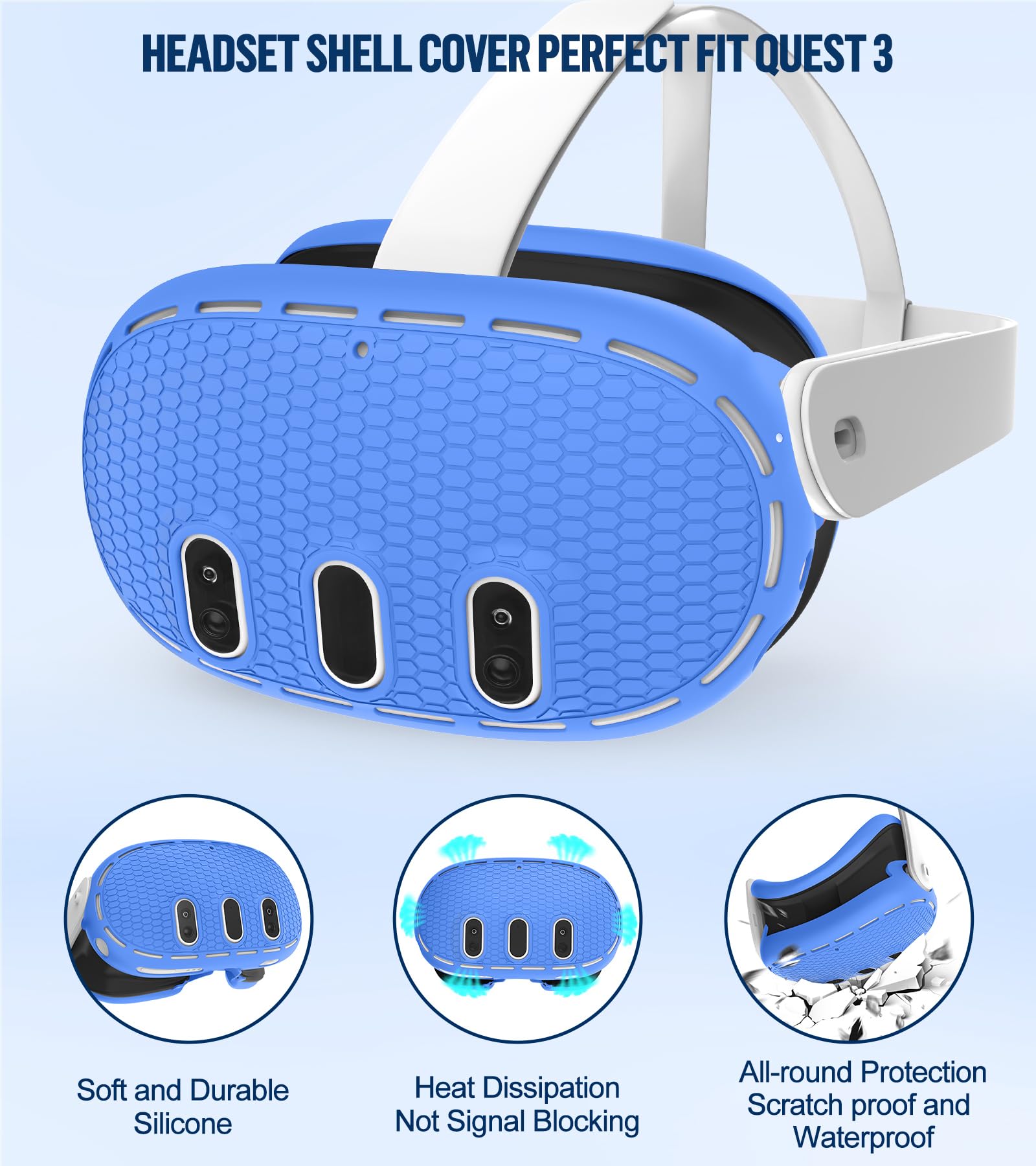 【Enjoyable Gaming Experience】The silicone protective skin cover set safeguarding Oculus Quest 3 from scratches, drops, and damage. They are Soft , Comfortable , Sweatproof, Reduce Shocks, lightproof and leakproof, specially designed and enhance gaming experience fit perfect compatible with Oculus 3.