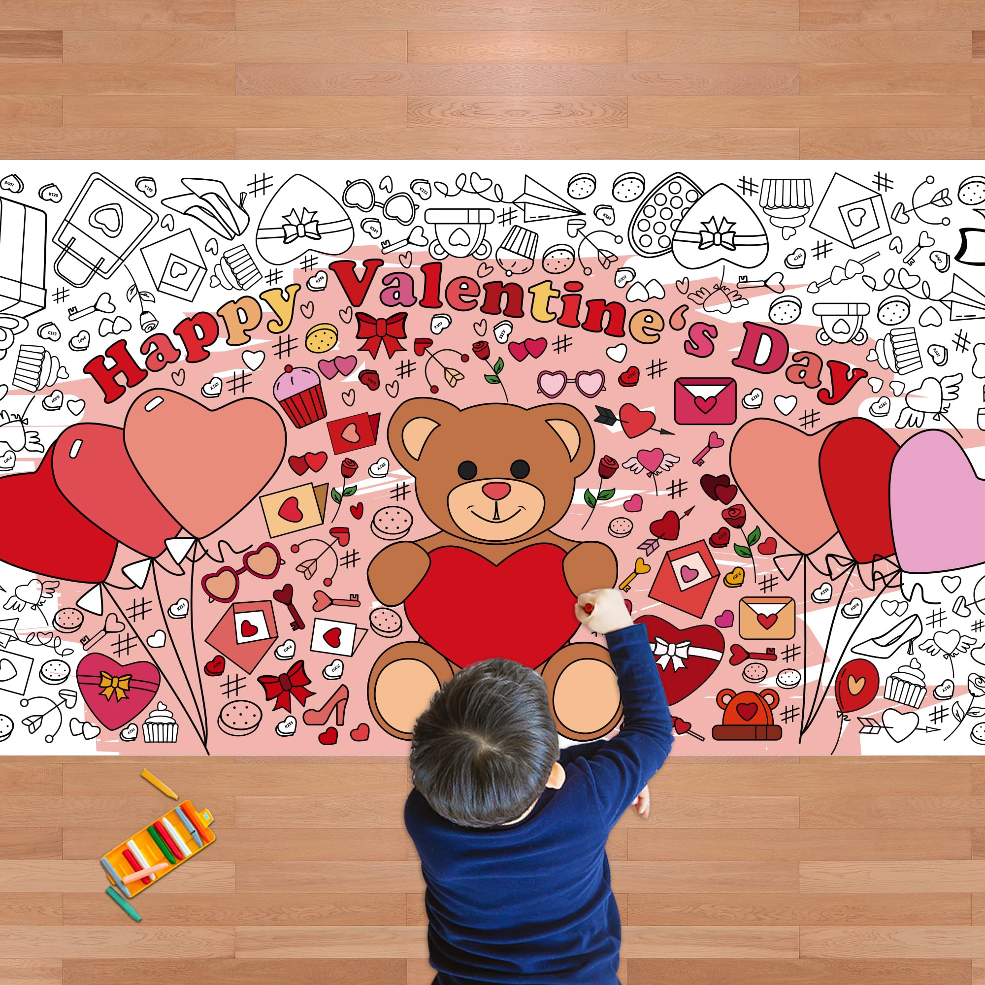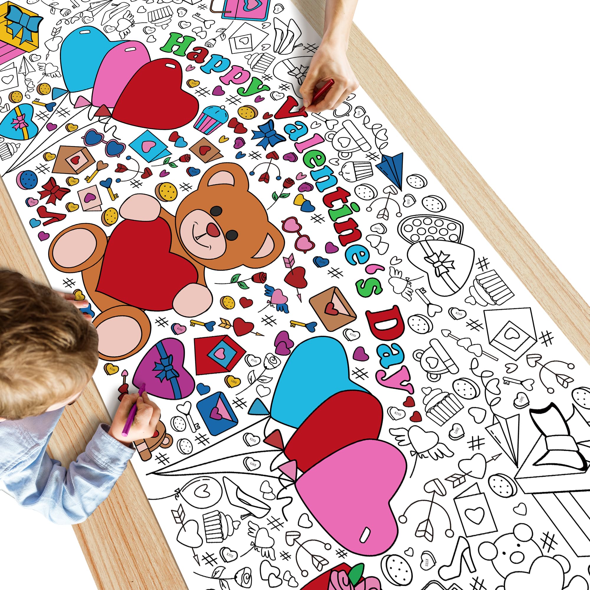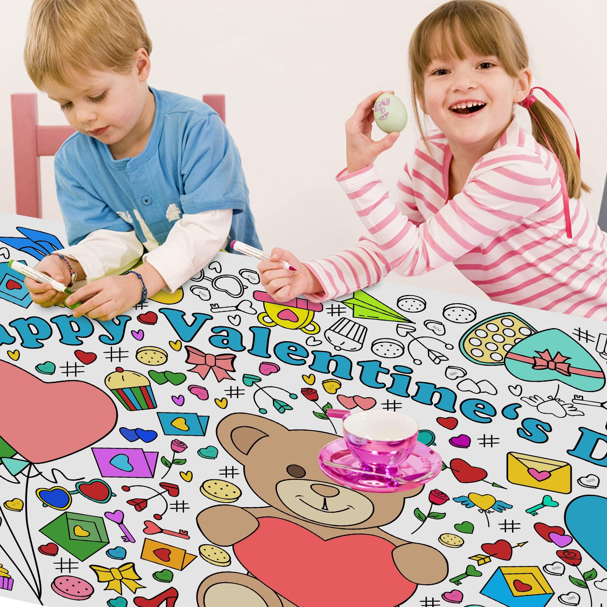 [Beautifully Designed Crafts]:Kids valentines day gifts for school!Get ready to celebrate valentines Day in the most creative way! This coloring poster/tablecloth is perfect for kids and adults who love to express their artistic side.Valentines day treats