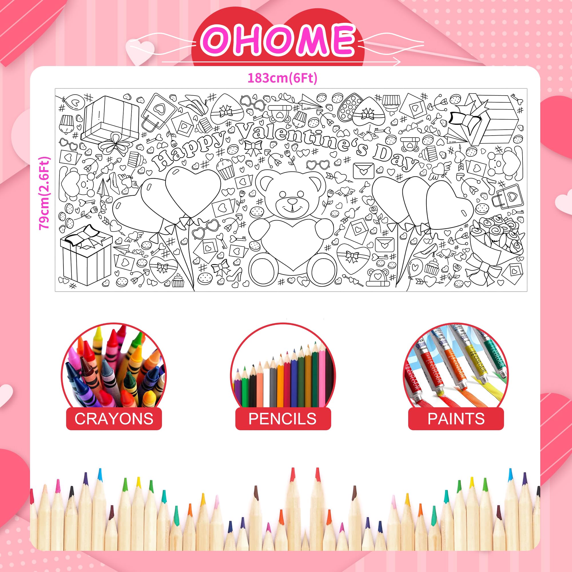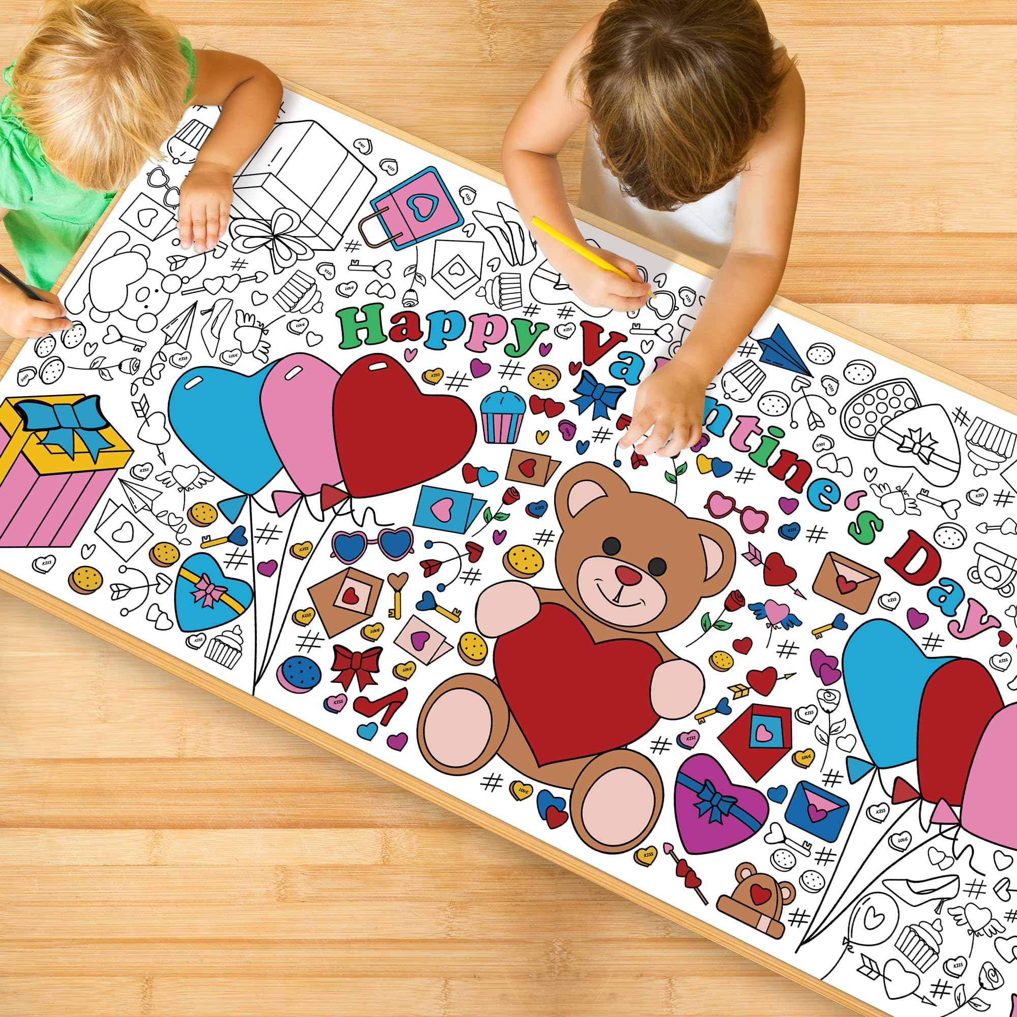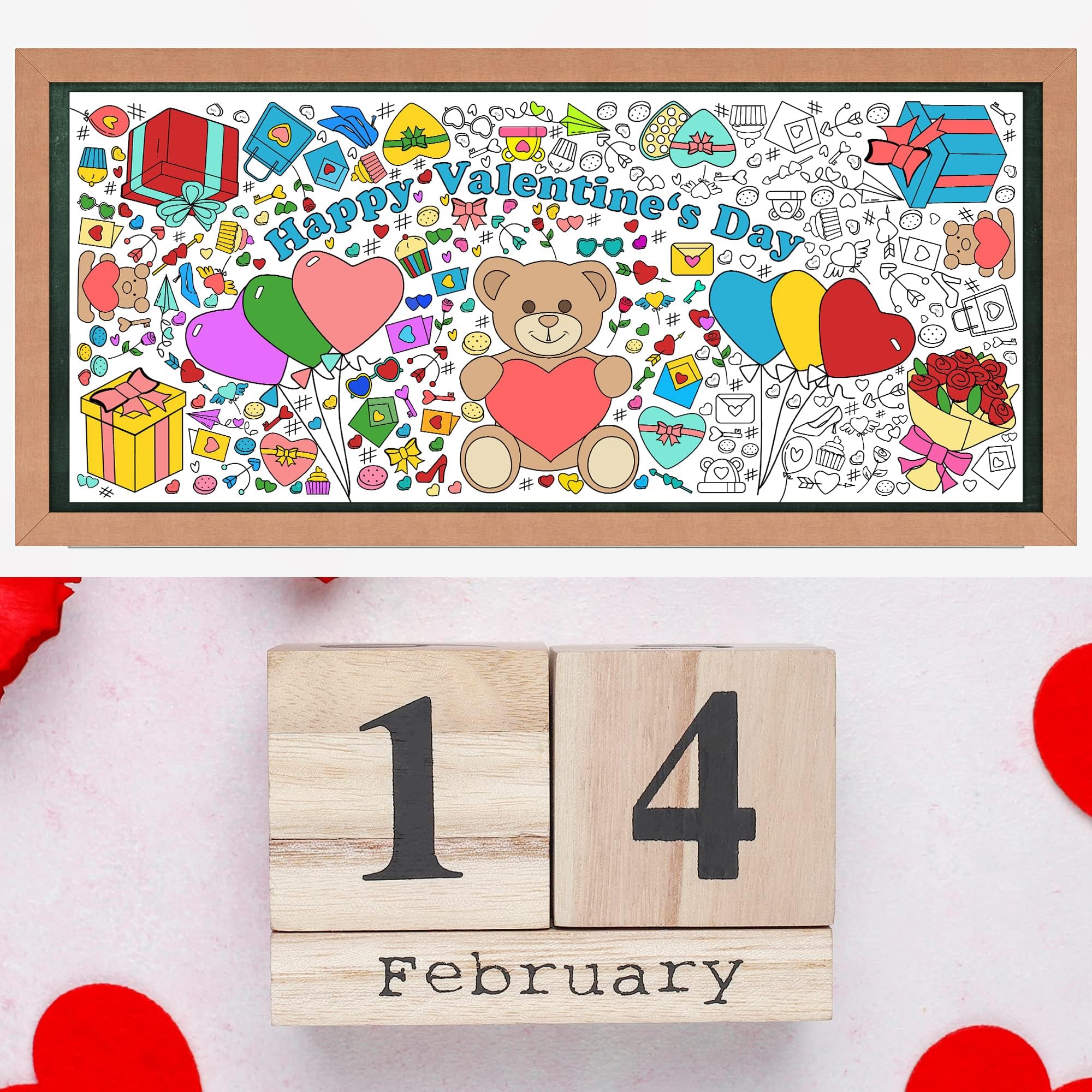 [Beautifully Designed Crafts]:Kids valentines day gifts for school!Get ready to celebrate valentines Day in the most creative way! This coloring poster/tablecloth is perfect for kids and adults who love to express their artistic side.Valentines day treats