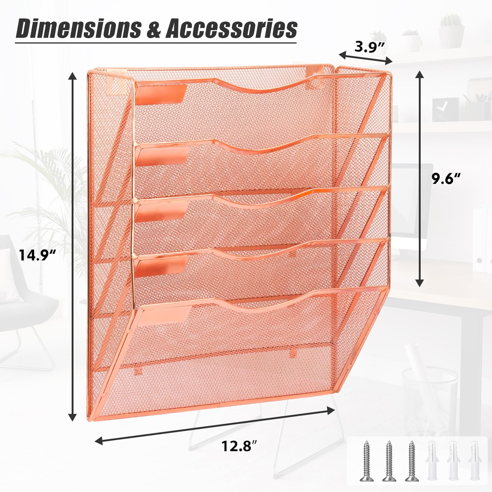 Stylish Design - Rose gold wall organizer adds a touch of elegance to your workspace, making it the perfect file organizer for women. It not only keeps your office tidy but also adds a pop of color to your surroundings