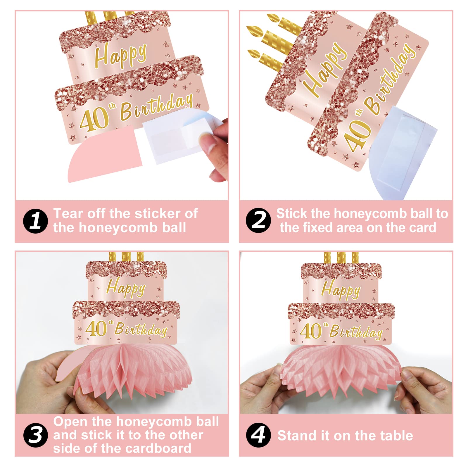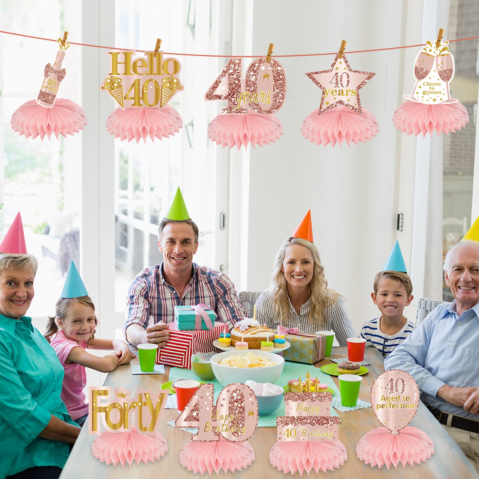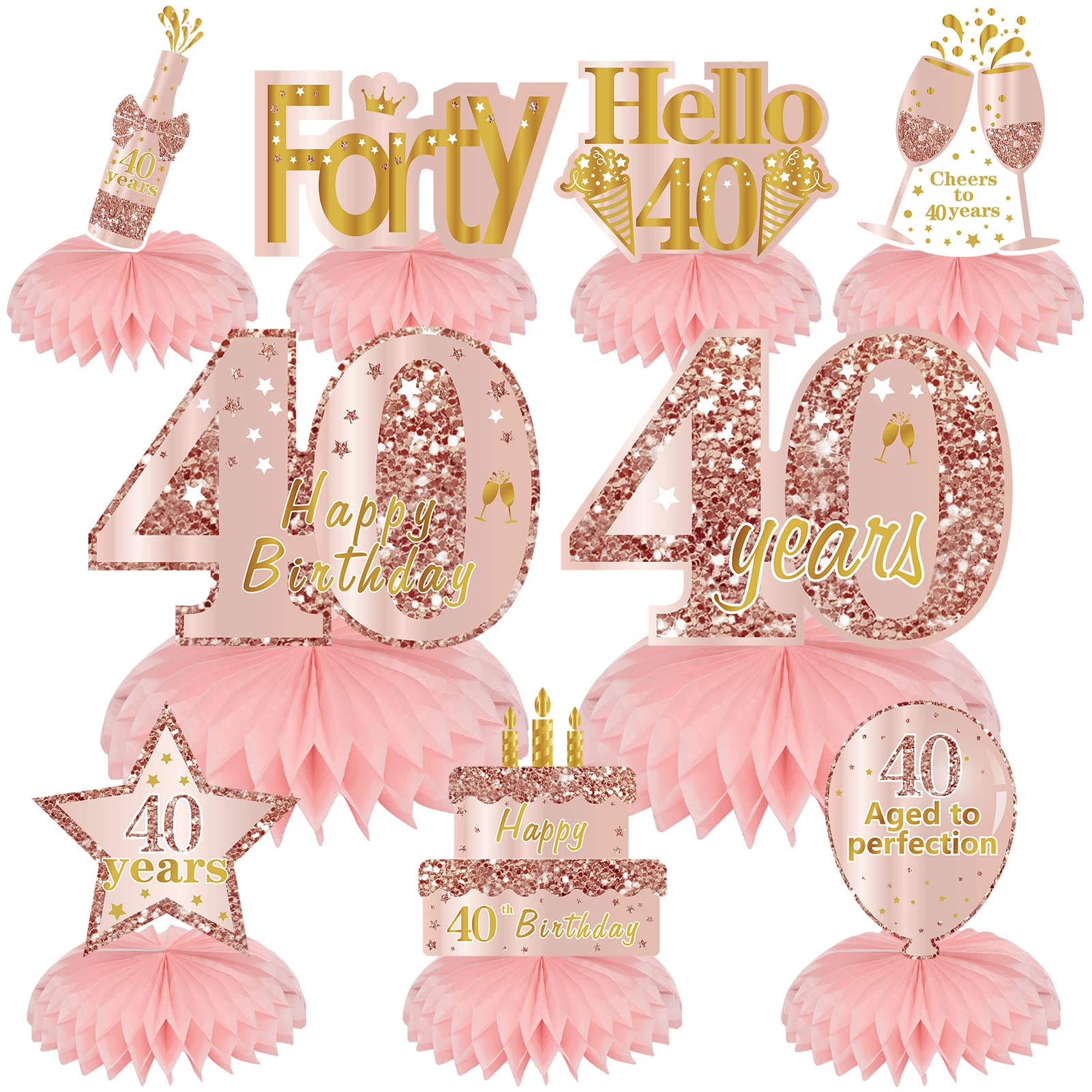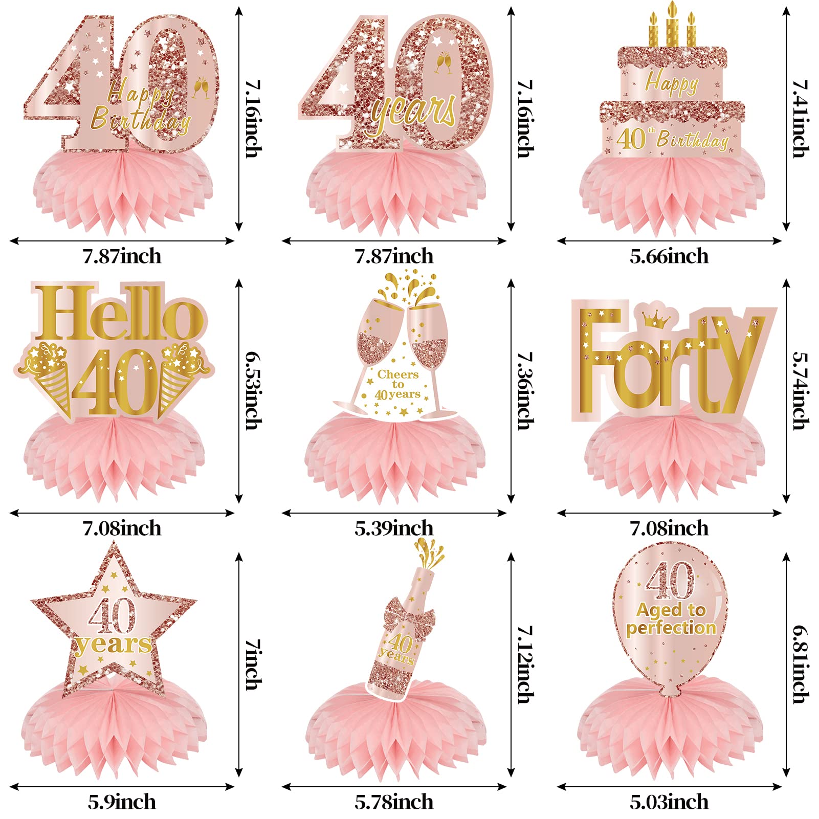 [You will get] - 9Pcs set of Pink Rose Gold 40th birthday honeycombs centerpieces decorations, including 9 birthday theme cardboard and 9 paper honeycomb balls, which are very suitable for your 40th birthday party decoration.