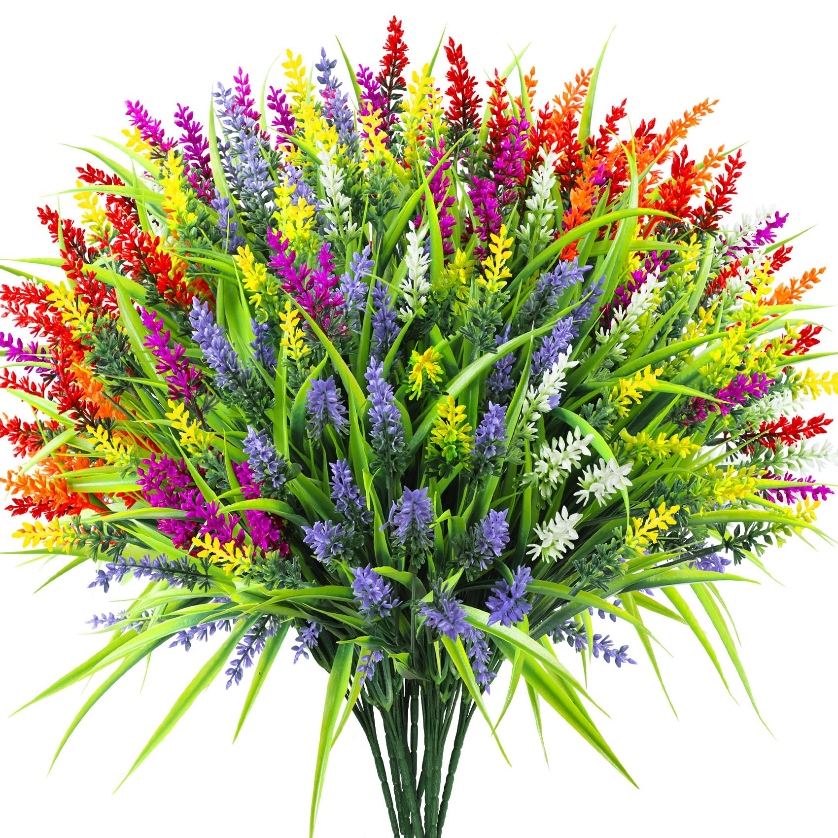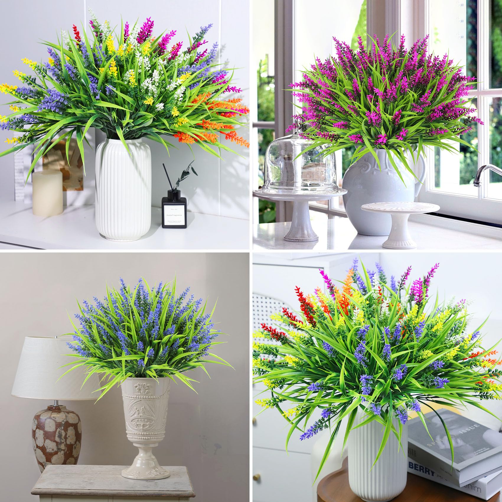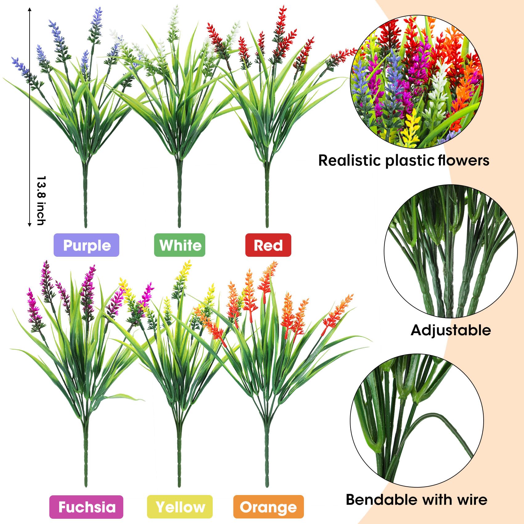 Abundant Package: 24 bundles beautiful artificial lavender flowers will bring you fresh natural beauty, in purple, white, red, fuchsia, yellow, orange; The rich quantity and color of artificial plants outdoor support you to freely DIY your home decoration