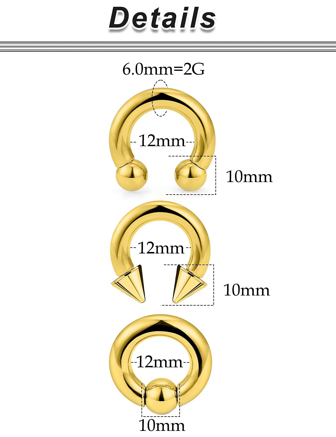 One Order Included 6 PCS Septum Rings Have 3 Styles, 1 Pairs Spike Horseshoes Septum Rings,1 Pairs Balls Horseshoes Septum Rings,1 Pairs Captive Bead Septum Rings,Economical Price with Trendy Design Give You a Colorful Day.