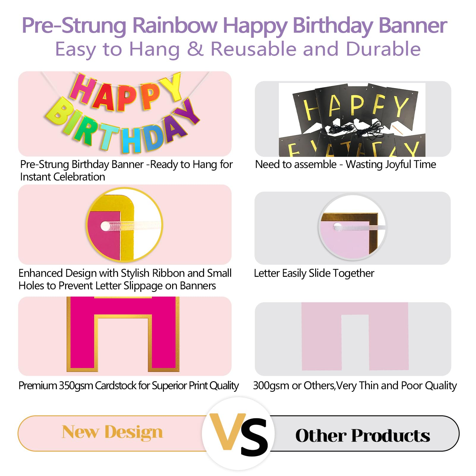 Ready to Party: Our happy birthday banner comes PRE-STRUNG and ready to hang, saving you time and effort in setting up your birthday party decorations