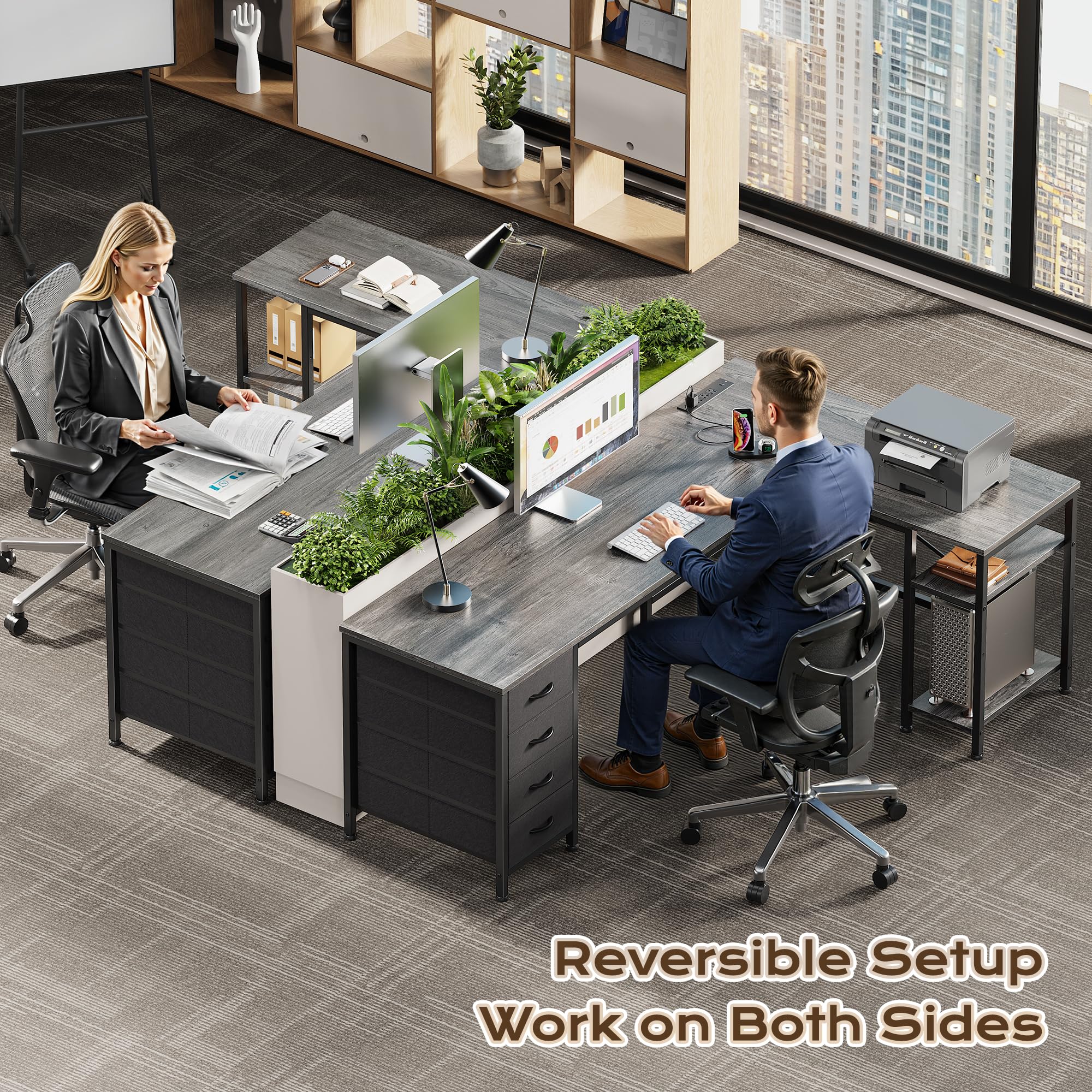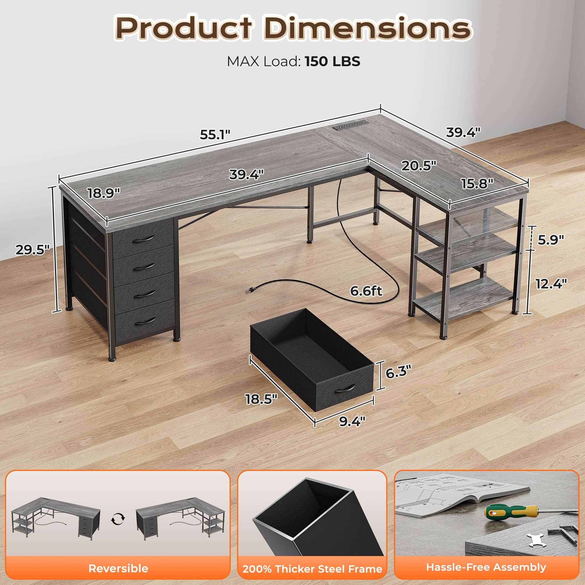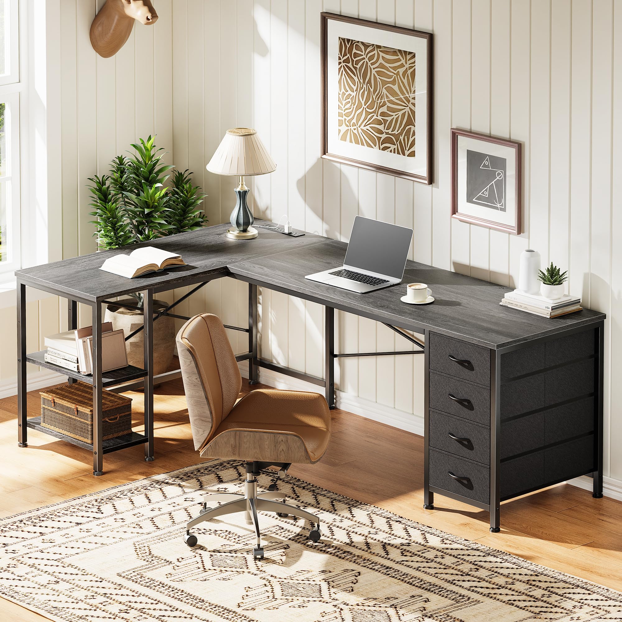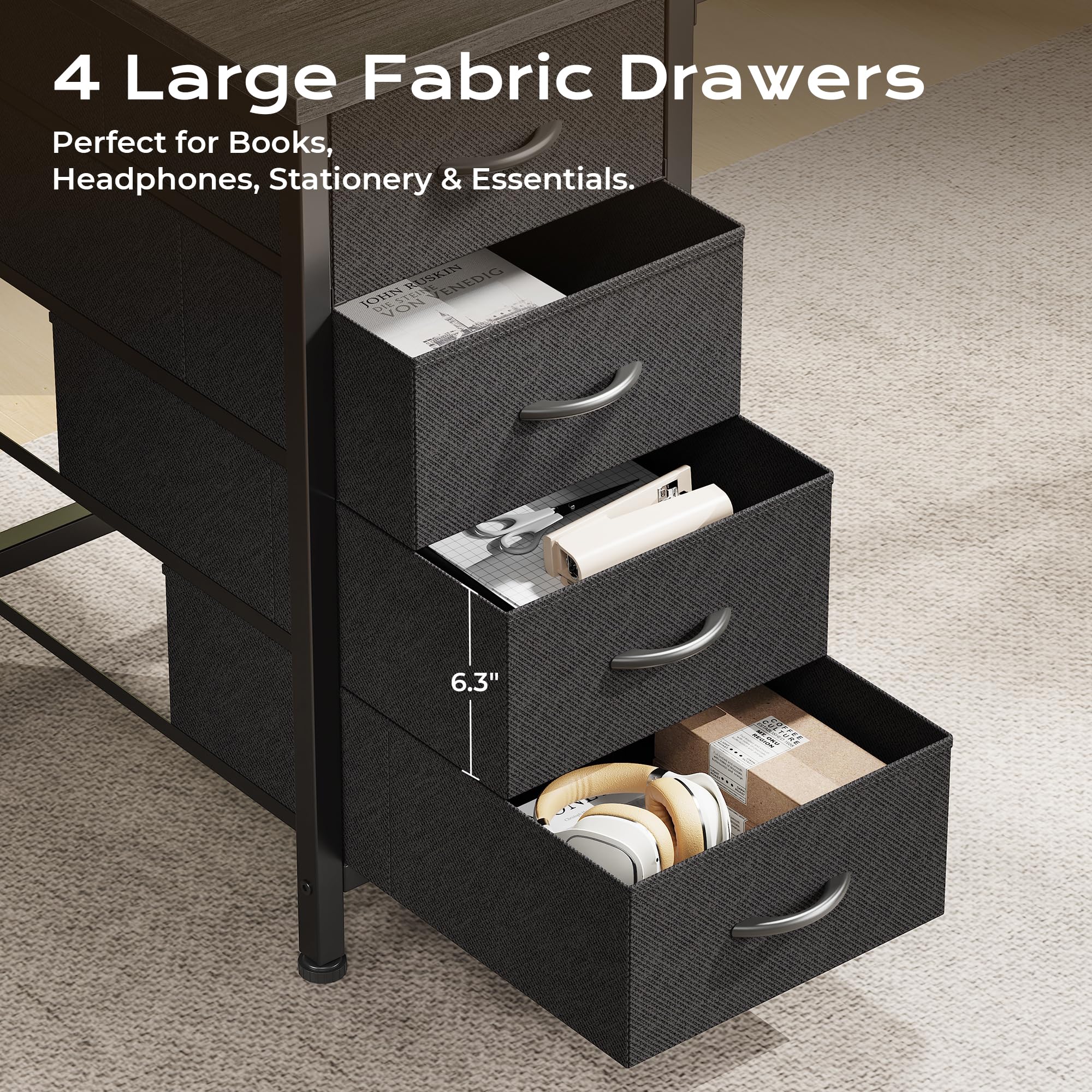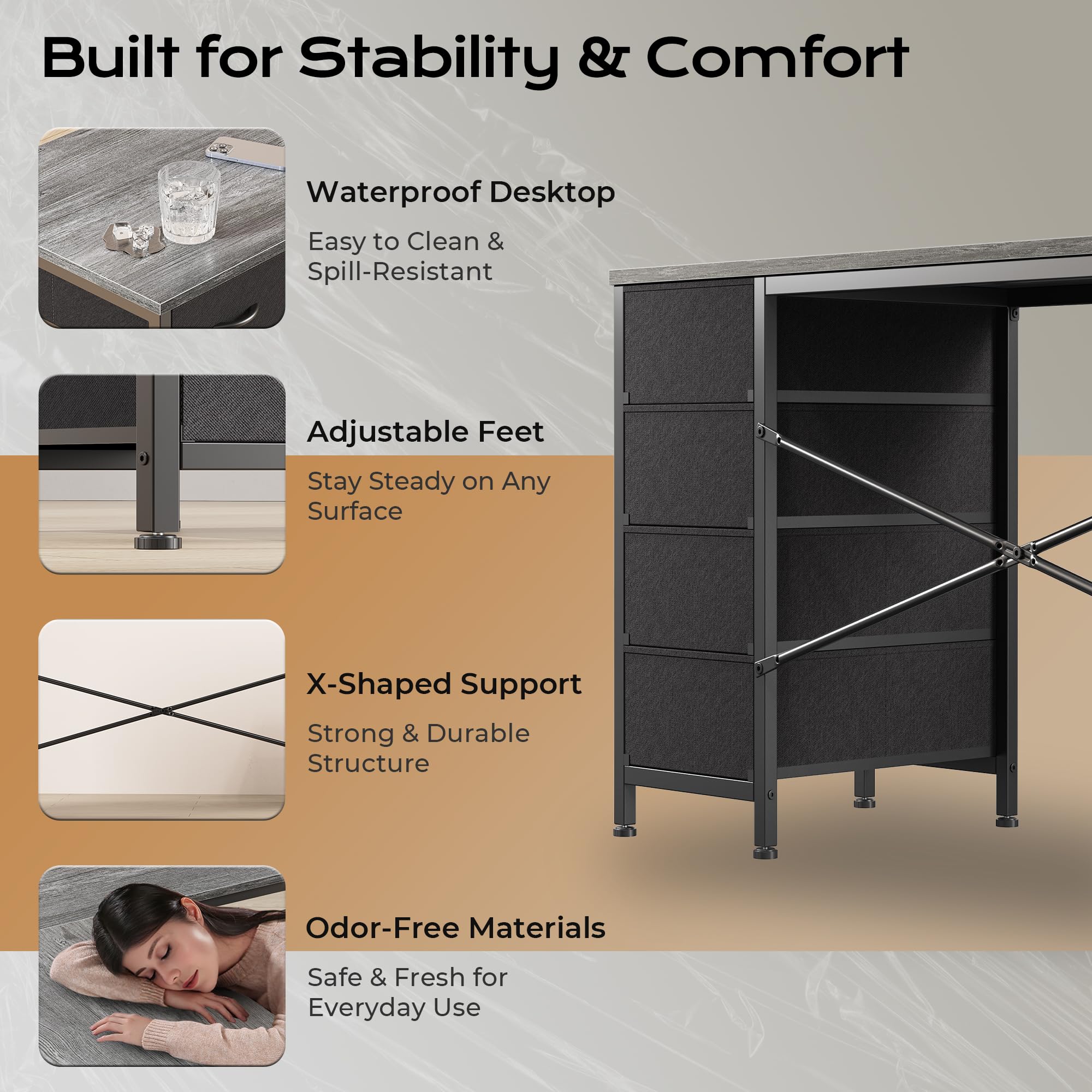【Desk with 4 Fabric Drawers and Adjustable Shelves】This l desk comes with 4 fabric drawers for your everyday essentials, plus 2 adjustable storage side shelves. Whether you're storing books, printer paper, or office supplies, you can customize the space to match how you work with this computer desk with drawers