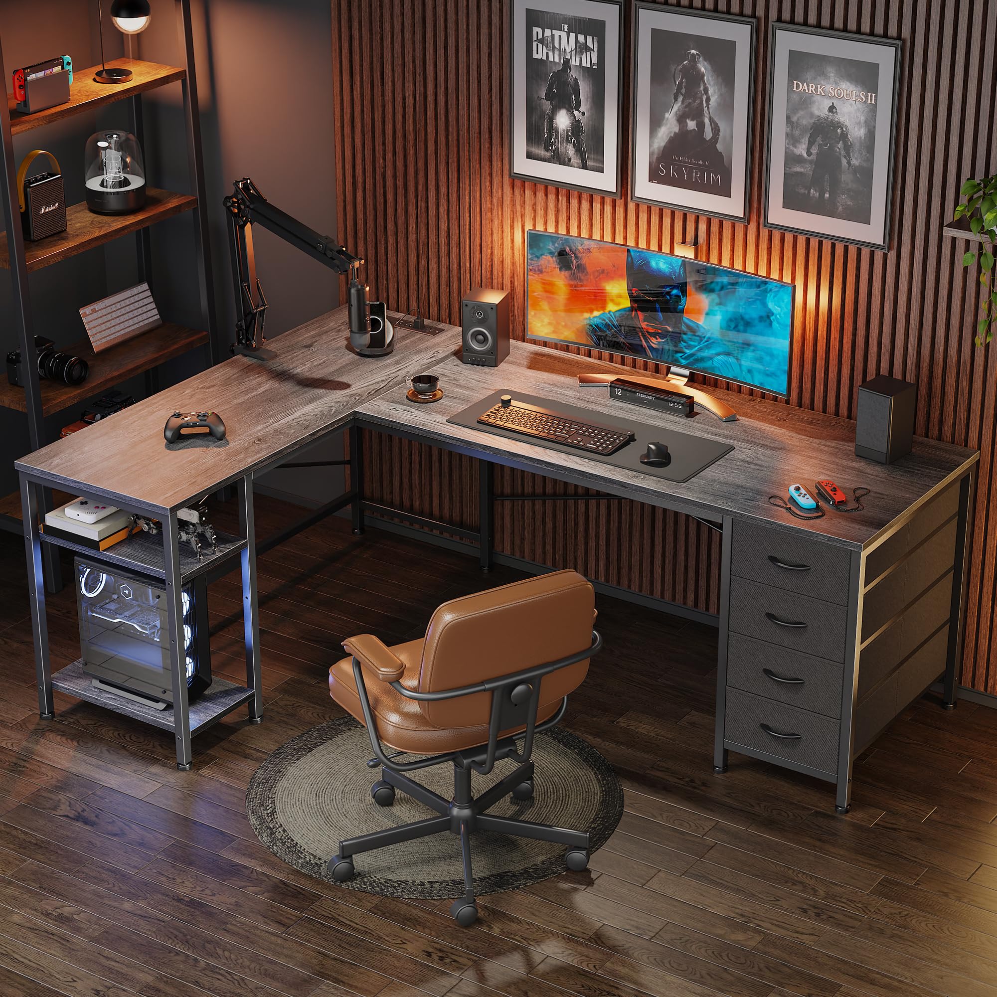 【Reversible Home Desk with Larger Legroom】Reversible L-shaped design lets you set up the work desk or gaming desk left or right to fit your space. Want a shared workspace or gaming room? Combine l shaped desks with storage for a roomy 2-person setup — great for home offices or open workspaces with lots of legroom