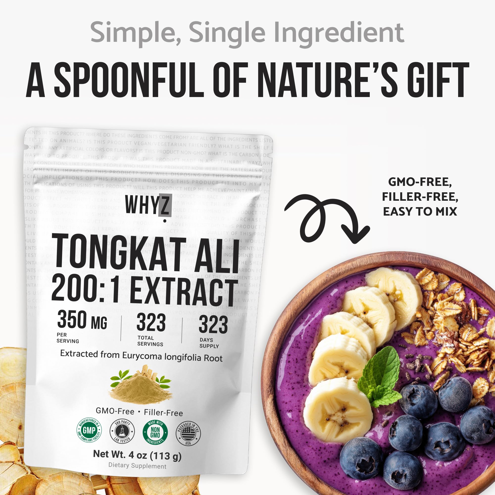 Elevate Your Energy Naturally: Say goodbye to those midday slumps and fatigue with our tongkat-ali dietary supplement. This powdered long jack for men and women surges your energy to power through your day, workouts, and activities with ease.