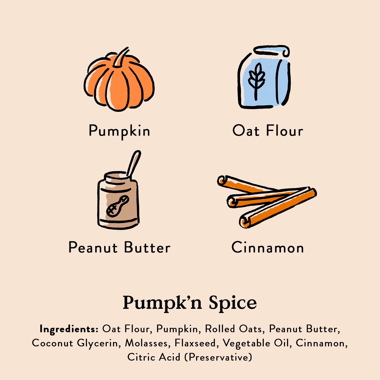 1 Fireside Apple Pie - Apple, Cheese & Cinnamon Recipe. 1 Pumpk'n Spice - Pumpkin, PB & Cinnamon Recipe. 1 Campfire S'mores - PB, Carob & Vanilla Recipe.