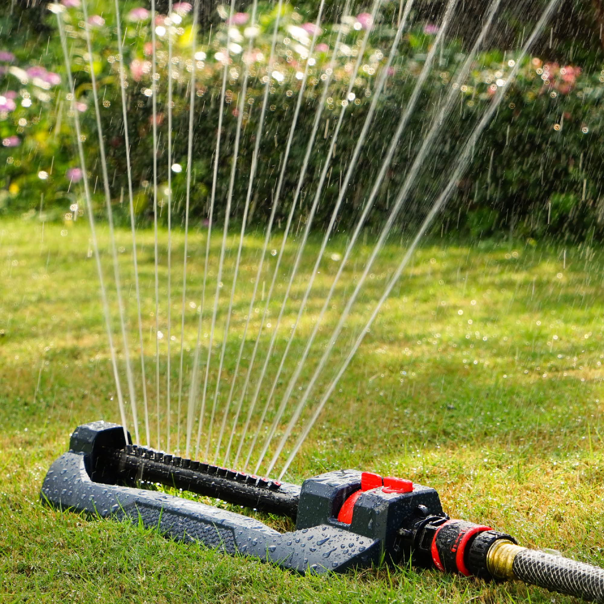 WEIGHTED BASE- Helps stabilize the sprinkler to ensure efficient and accurate watering.