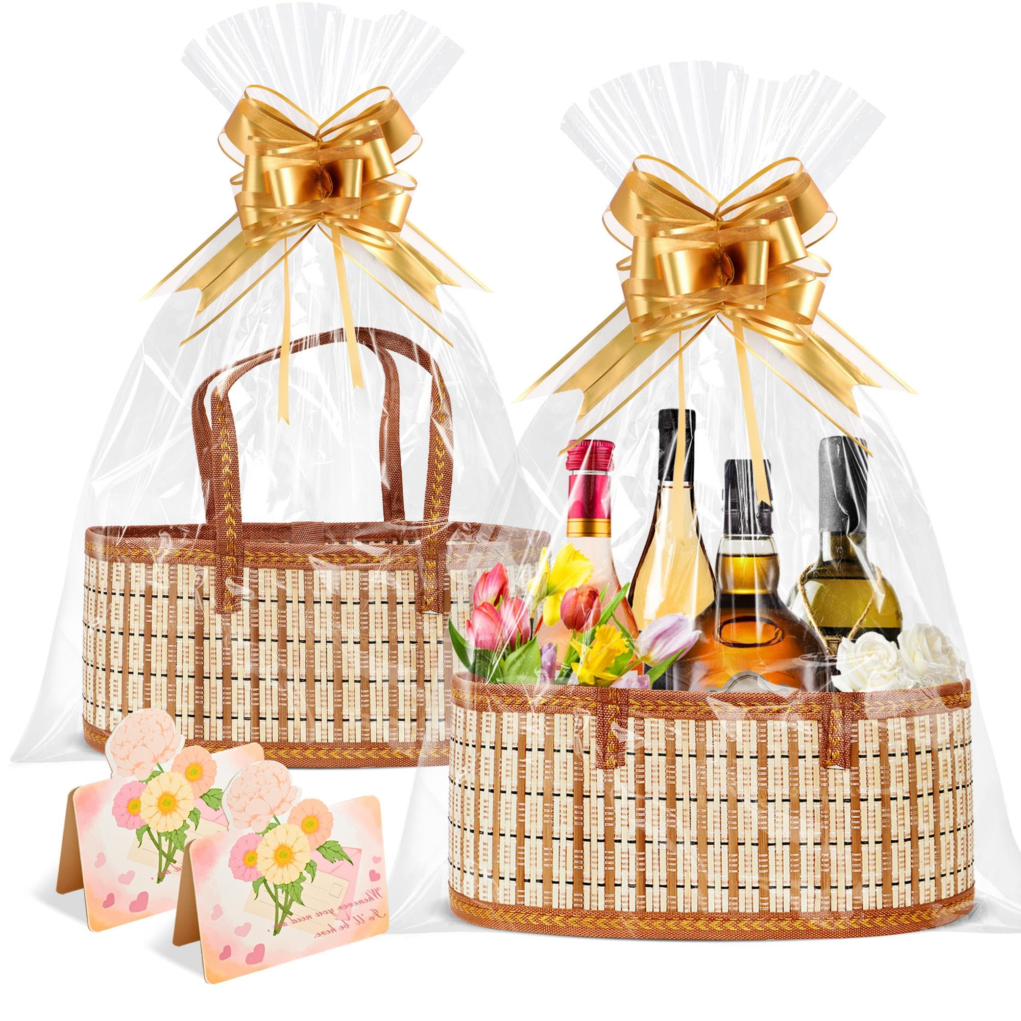 COMPLETE RICH EMPTY GIFT BASKET SET: The gift basket set includes 3 bamboo empty gift baskets, 3 high quality clear bags, 3 red folded bows, 3 gift cards, abundant in abundance, they make great holiday decorations and make your gift unique.