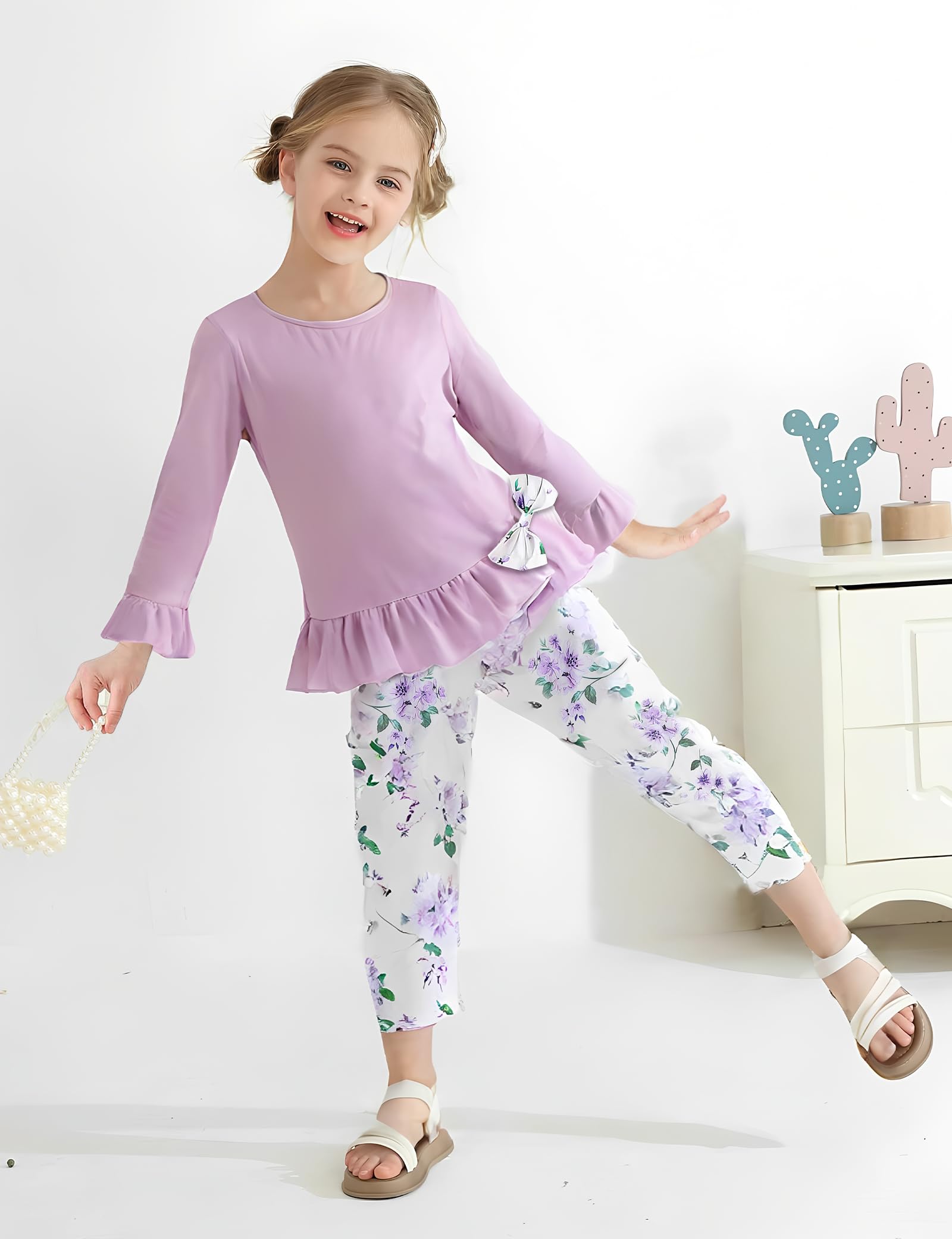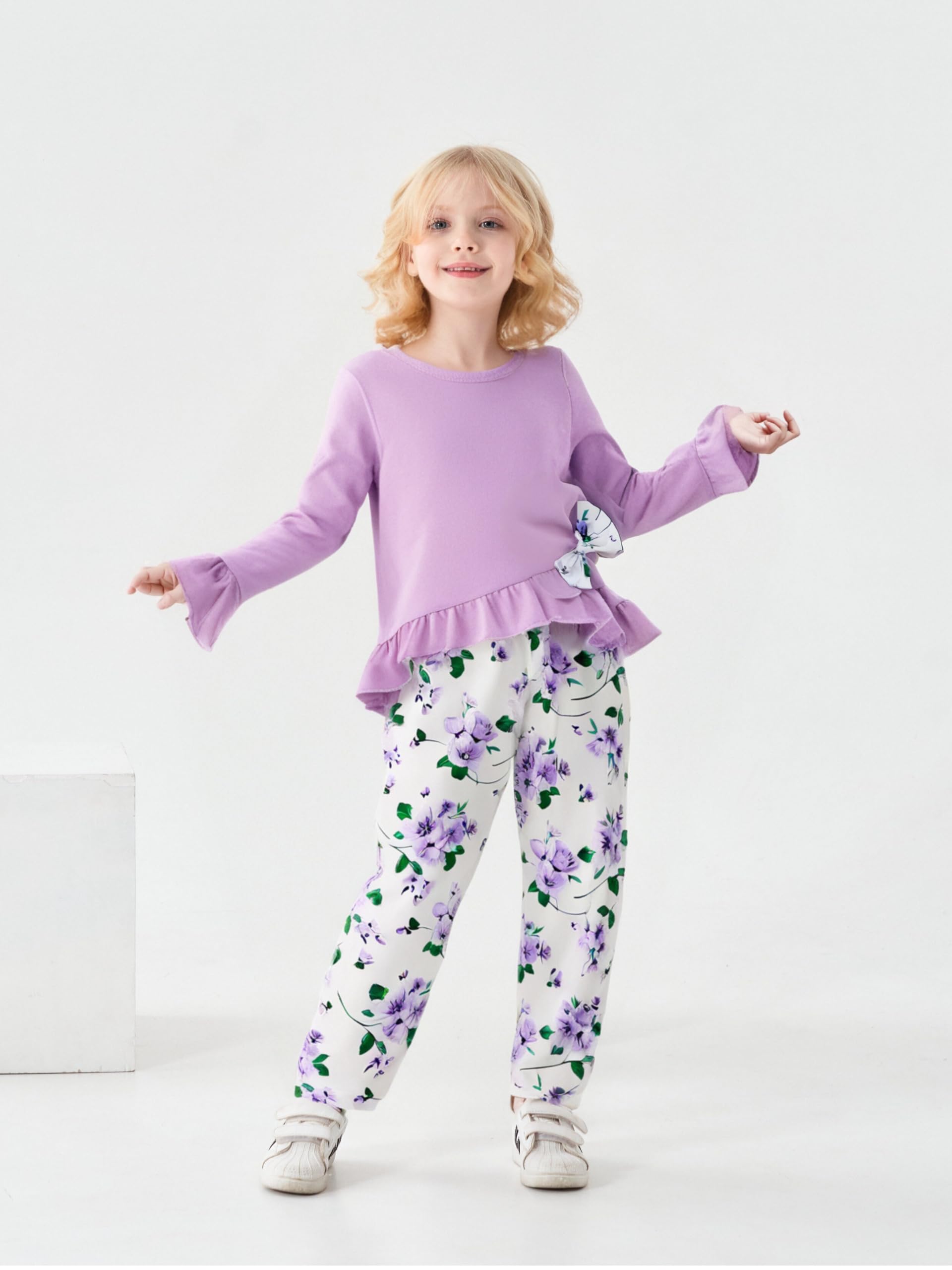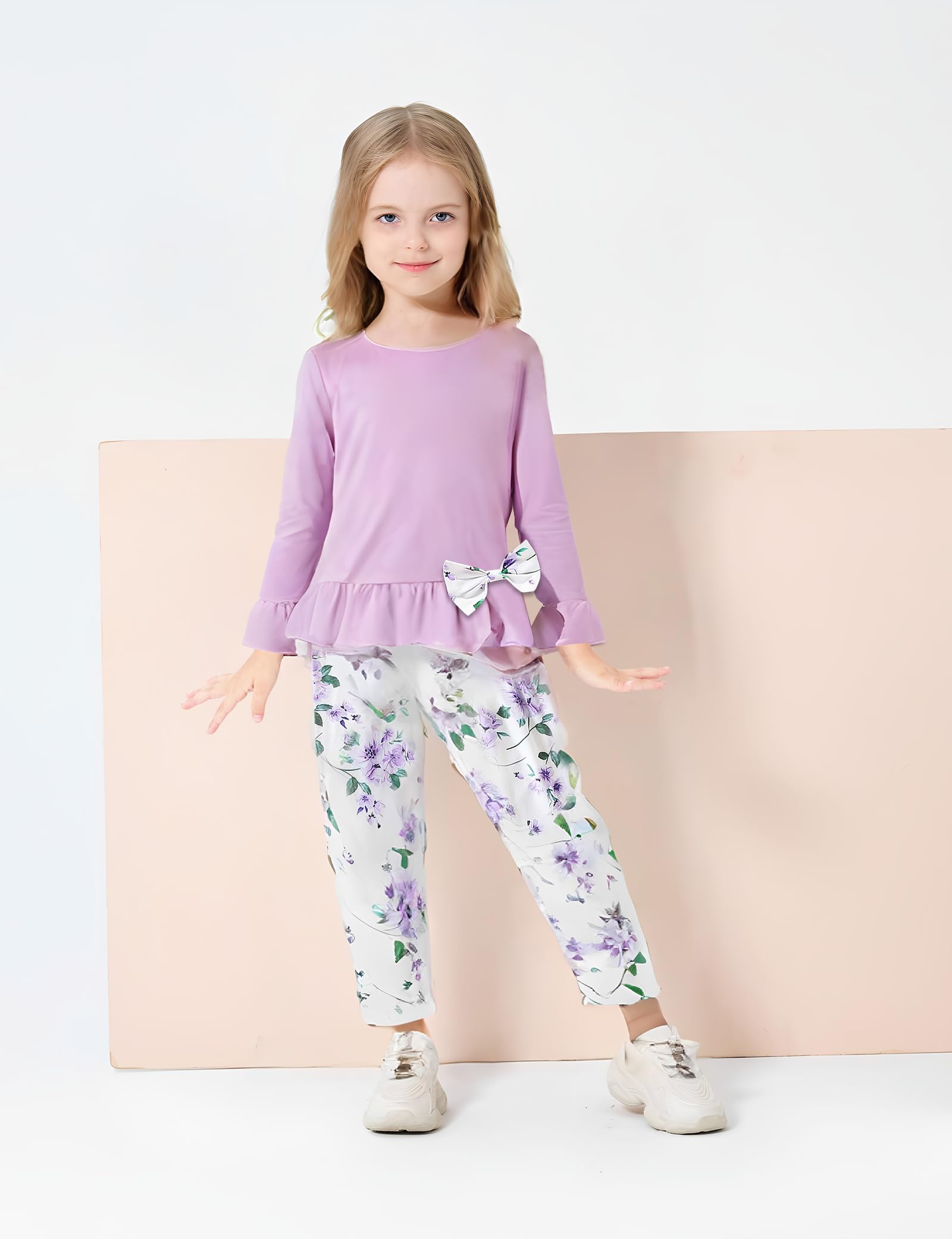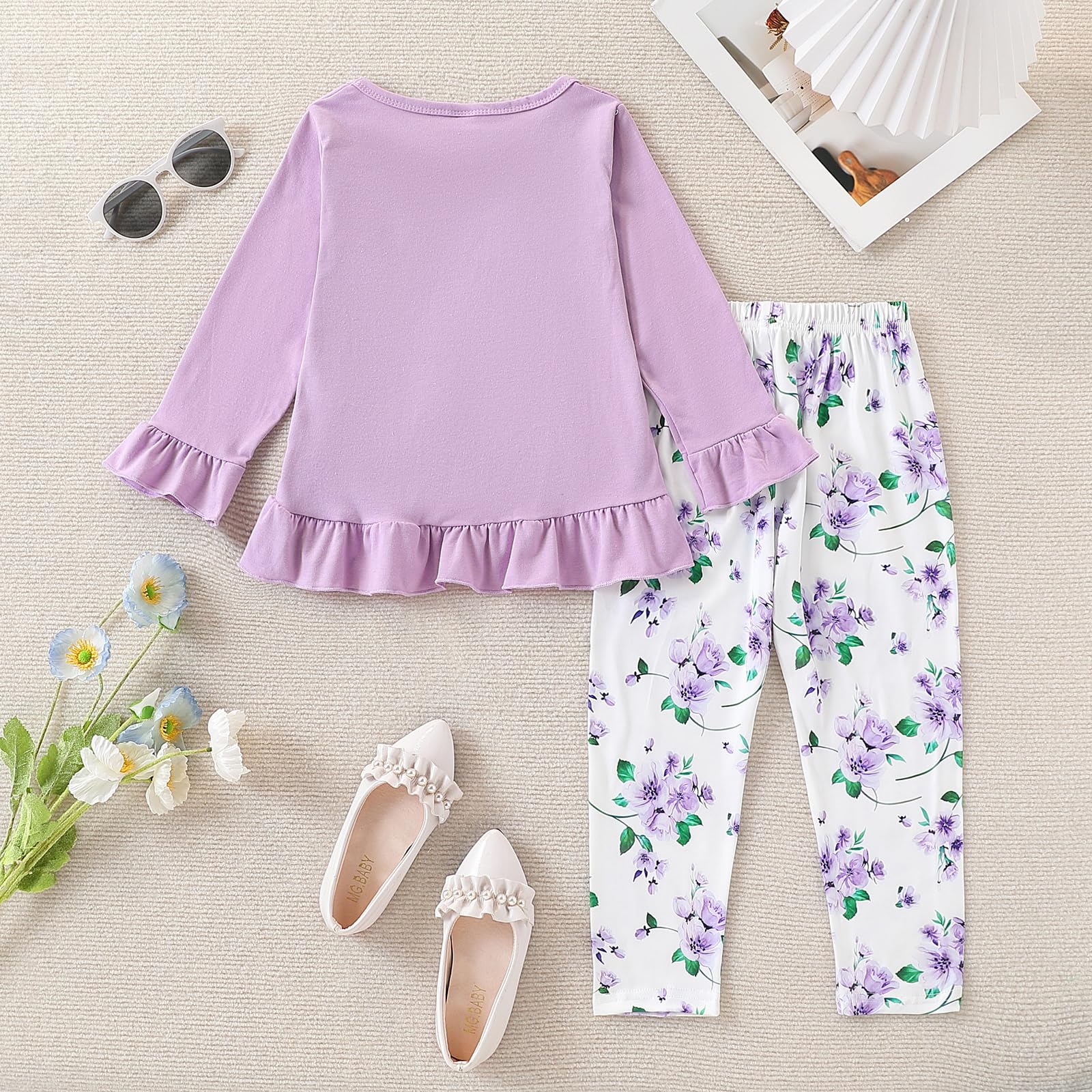 【Comfortable Fabric】Made from soft, breathable cotton blend, this girls' clothing set ensures all-day comfort—perfect for school, travel, or everyday wear.