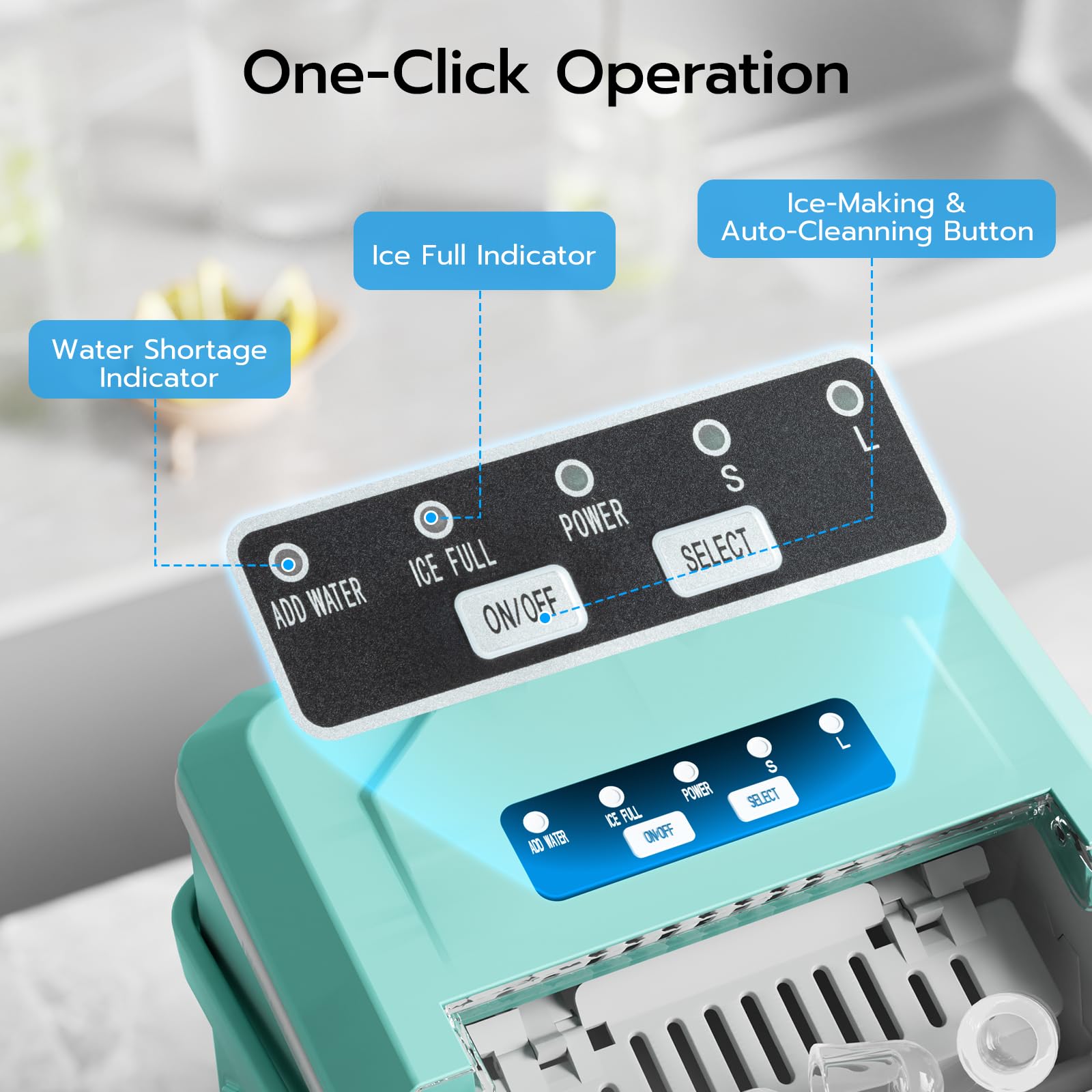 【Effortless Carry & Serve】 – This portable ice maker Designed with two sturdy handles—one on the machine, one on the ice basket—for easy lifting, serving, and moving from kitchen to patio.