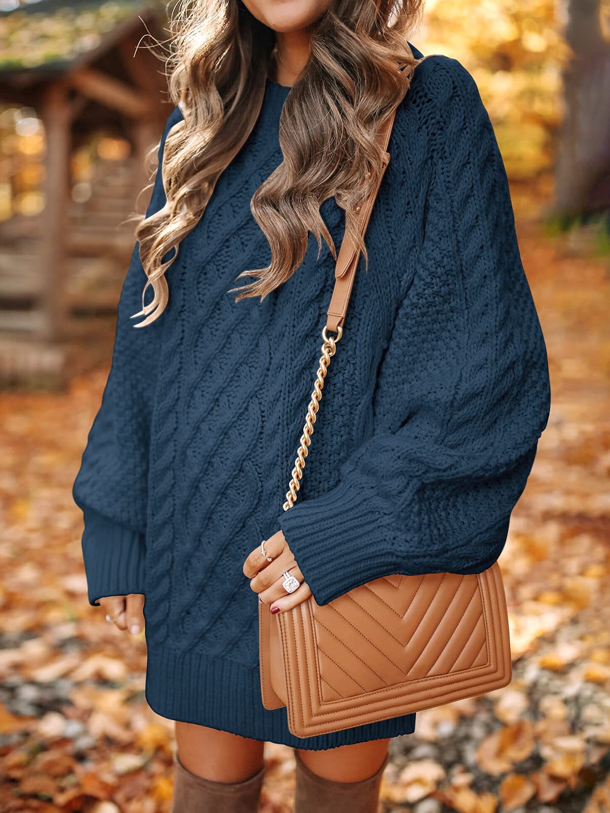 Features - The womens oversized pullover mini sweater dress is designed with long sleeve,crewneck , chunky and loose fit, tunic length , the weave type is cable knit,which is popular and trendy style in fall and winter 2025.