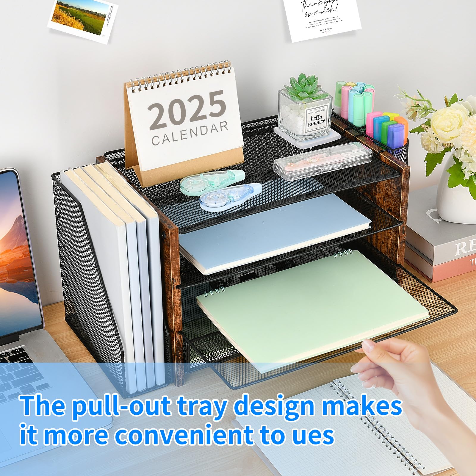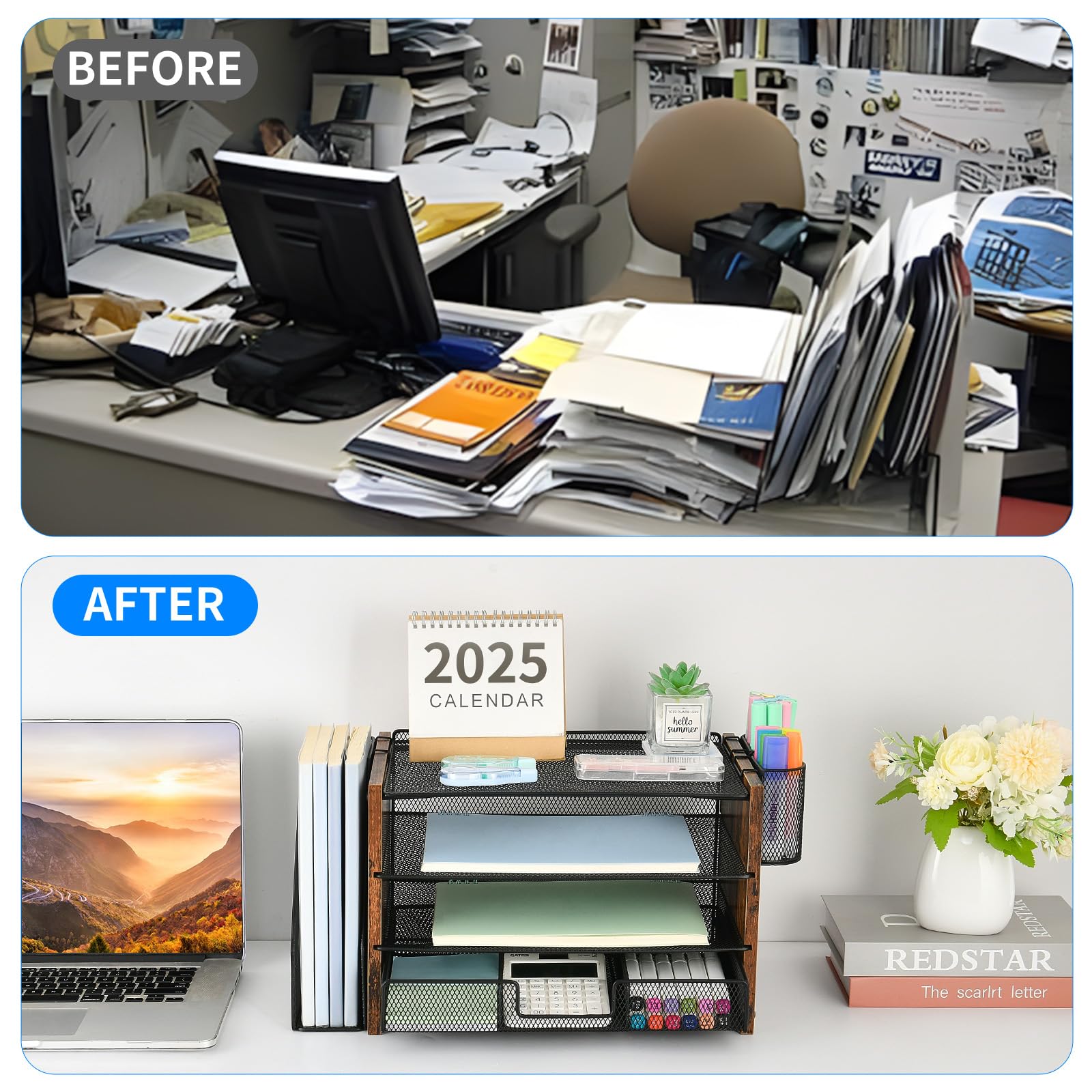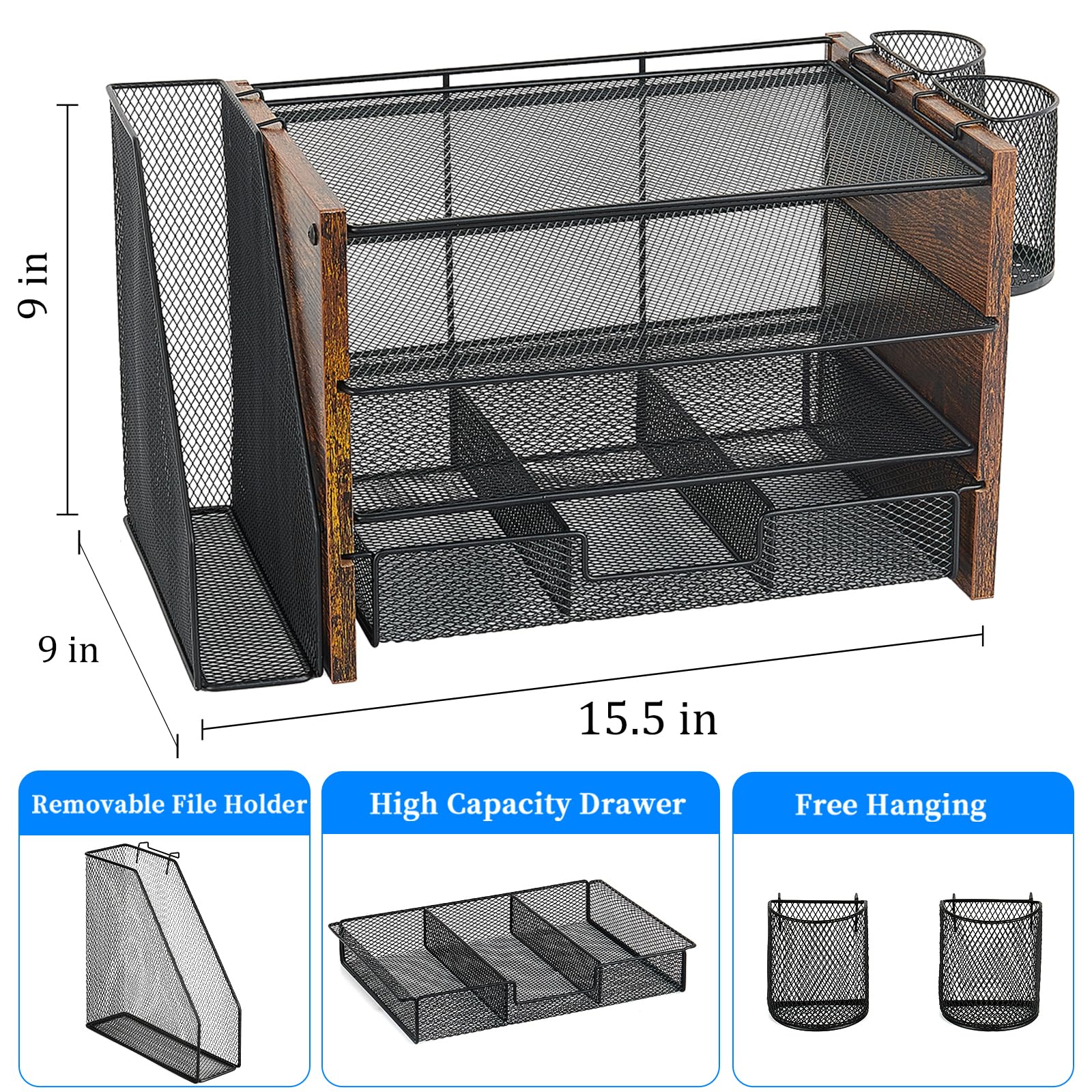 đăPremium QualityăCrafted from high-quality industrial-strength steel wire mesh and reinforced with a solid steel frame, our desk file organizer is built to last. You can trust that it will withstand the test of time and keep your workspace organized for years to come