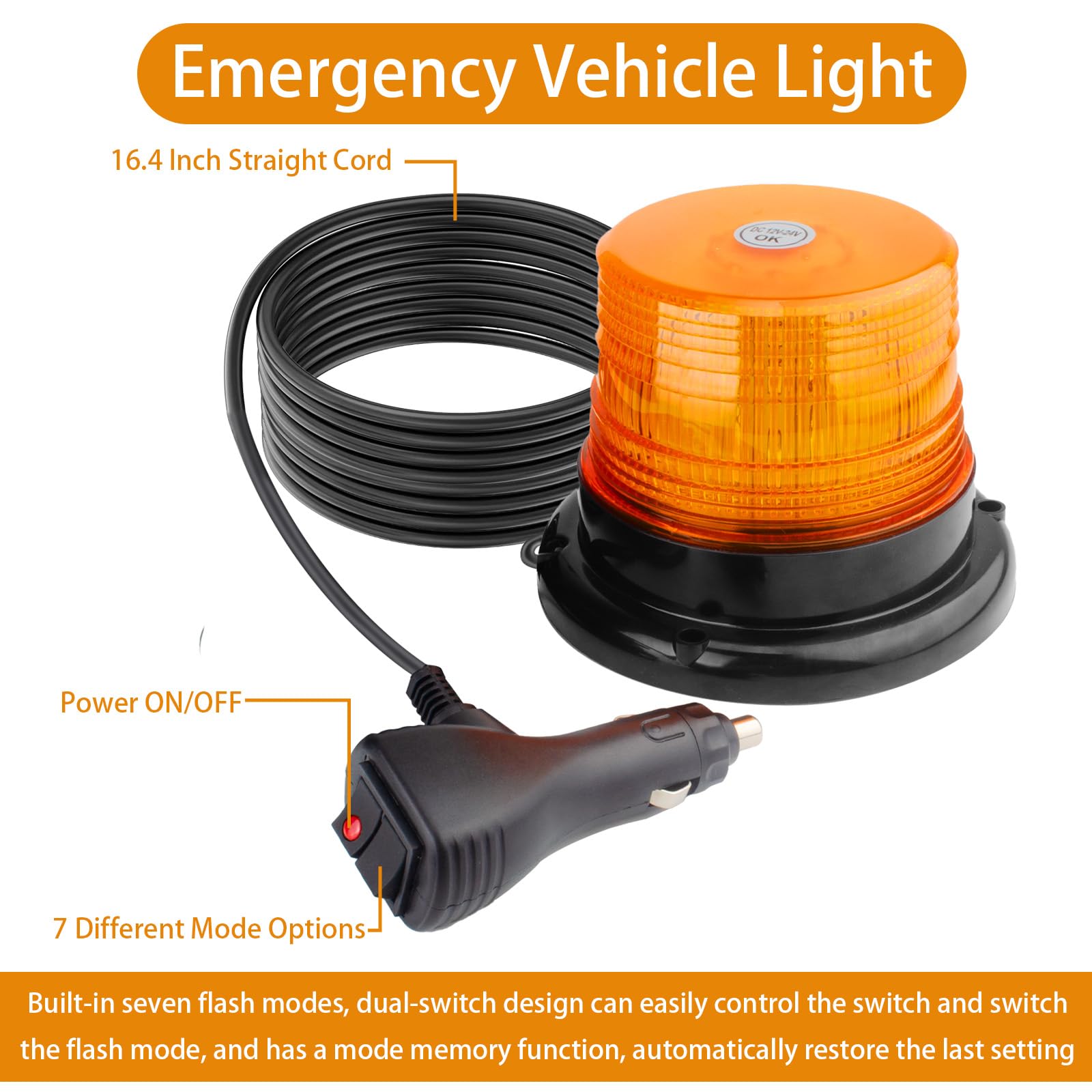 Widely Compatible: The size of the emergency vehicle lights are 3.5 (L)*5 (W)*3.7 (H) inch and equipped with a 16 ft straight cord, which is fully compatible with vehicles with 12-24V power outlets, including but not limited to emergency vehicles, construction vehicles, trucks, snowplows, forklifts, tractors and golf carts. It is also suitable as a gift for family and friends