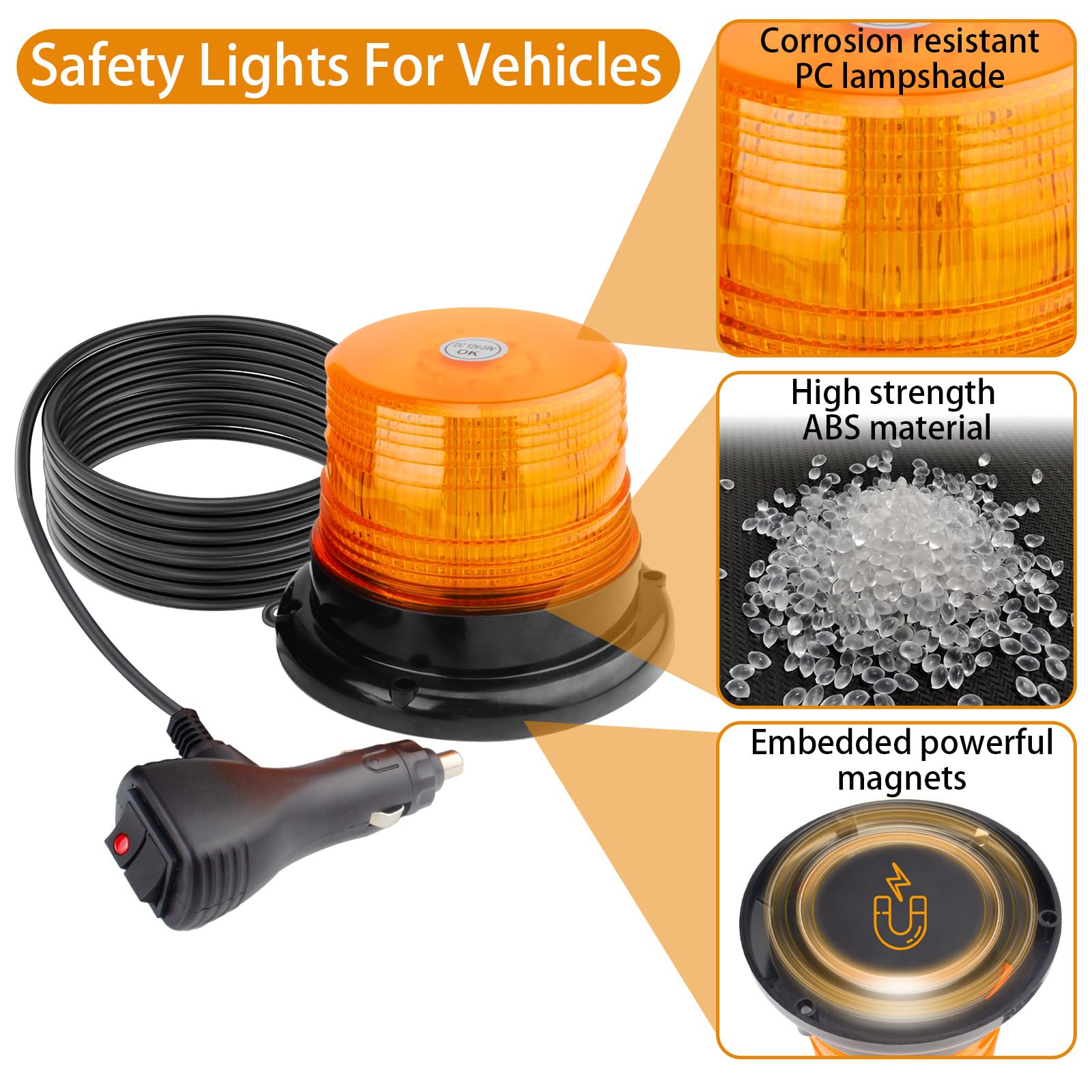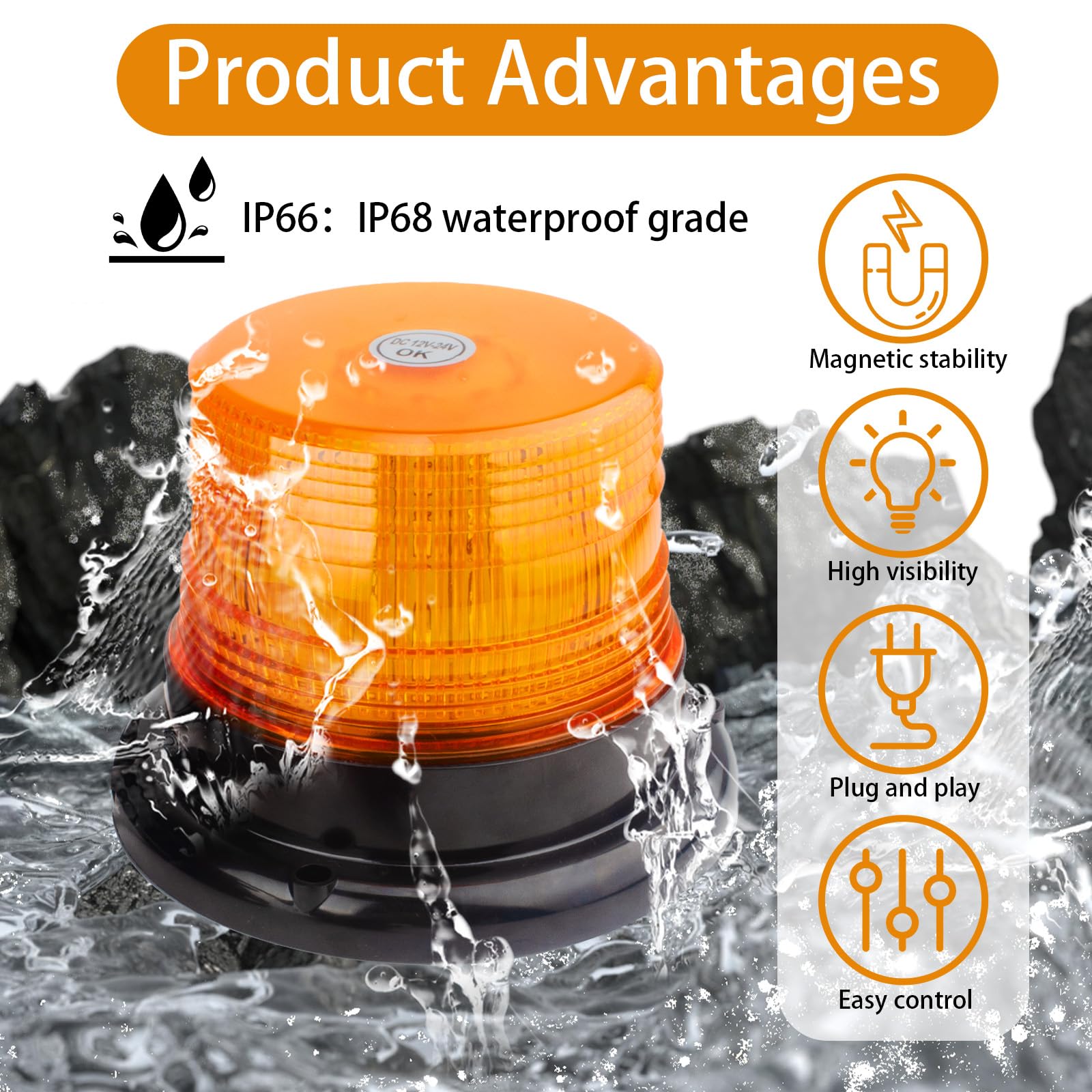 Durable: This amber strobe light is made of high-strength ABS material and corrosion-resistant PC lampshade, embedded with powerful magnets, which is not only strong and stable, but also has excellent durability, with a service time of up to 50,000 hours
