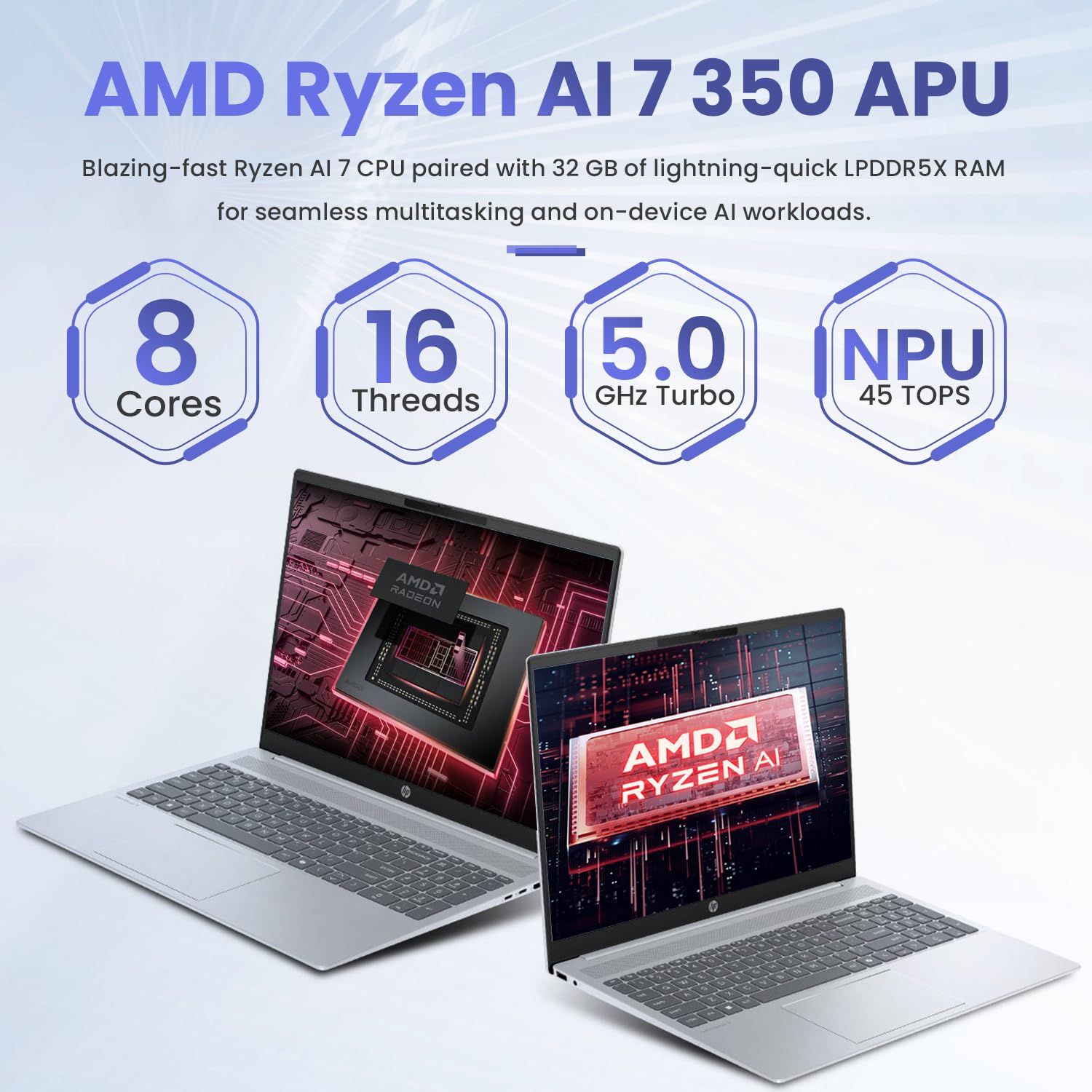 [Al-Powered Performance] AMD Ryzen AI 7 350 Processor (8 Cores, 16 Threadss, 16 MB L3 Cache, Base Frequency at 2.0 GHz, Up to 5.0 GHz at Max Turbo Frequency), integrated with AMD Radeon Graphics for superior multitasking