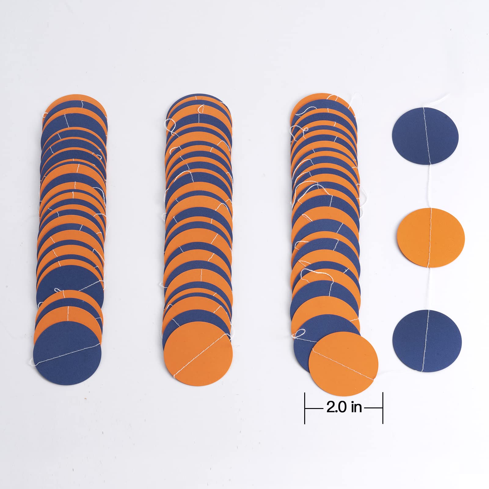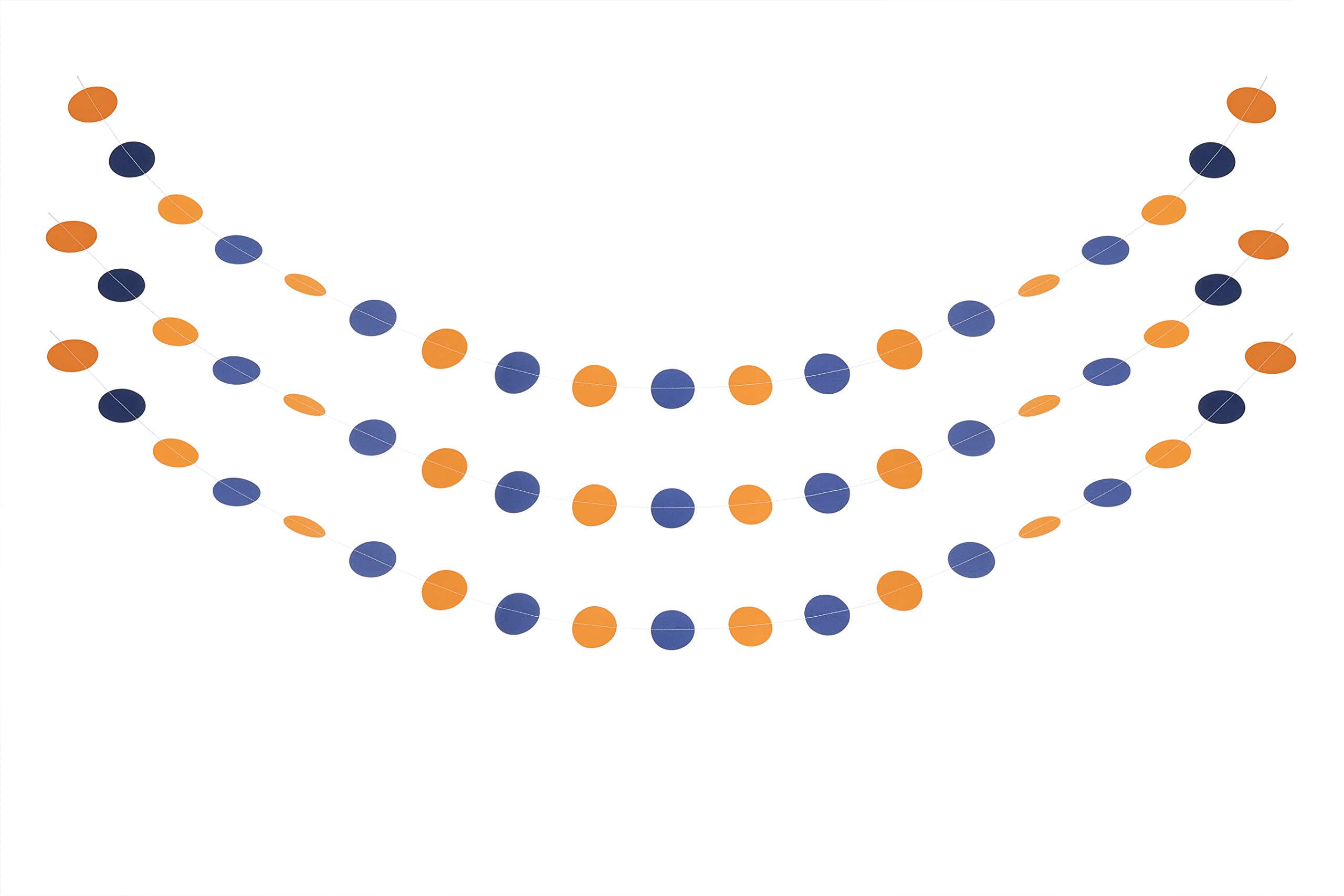 Navy blue and orange circle dot paper garland, made of high quality craft paper