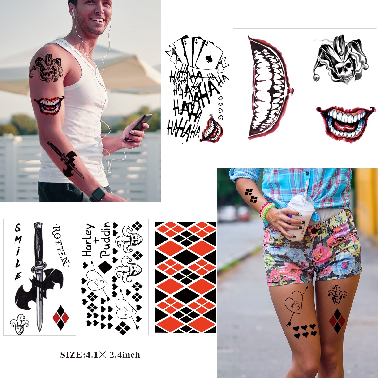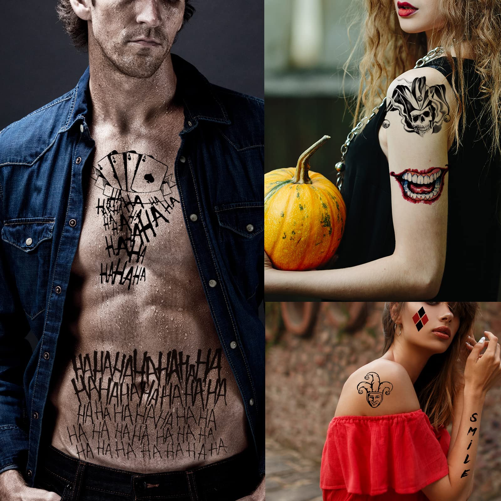 ❥【EASY TO USE & REMOVE】- Put the Joker tattoos and wet it, in less than 30 seconds with long lasting tattoos. These stylish tattoos are easily removable by rubbing baby oil.