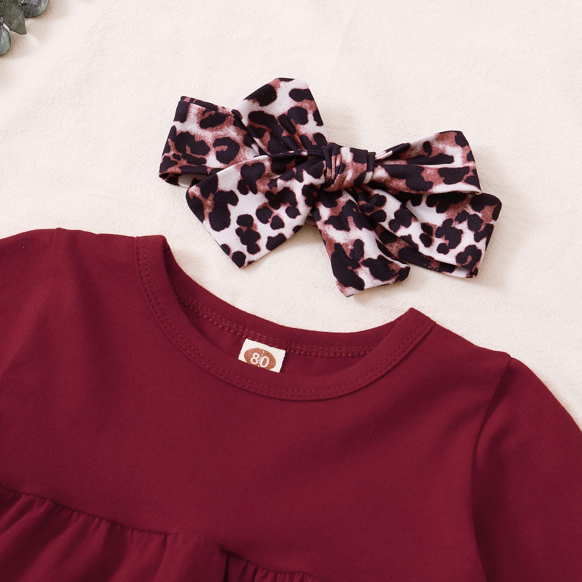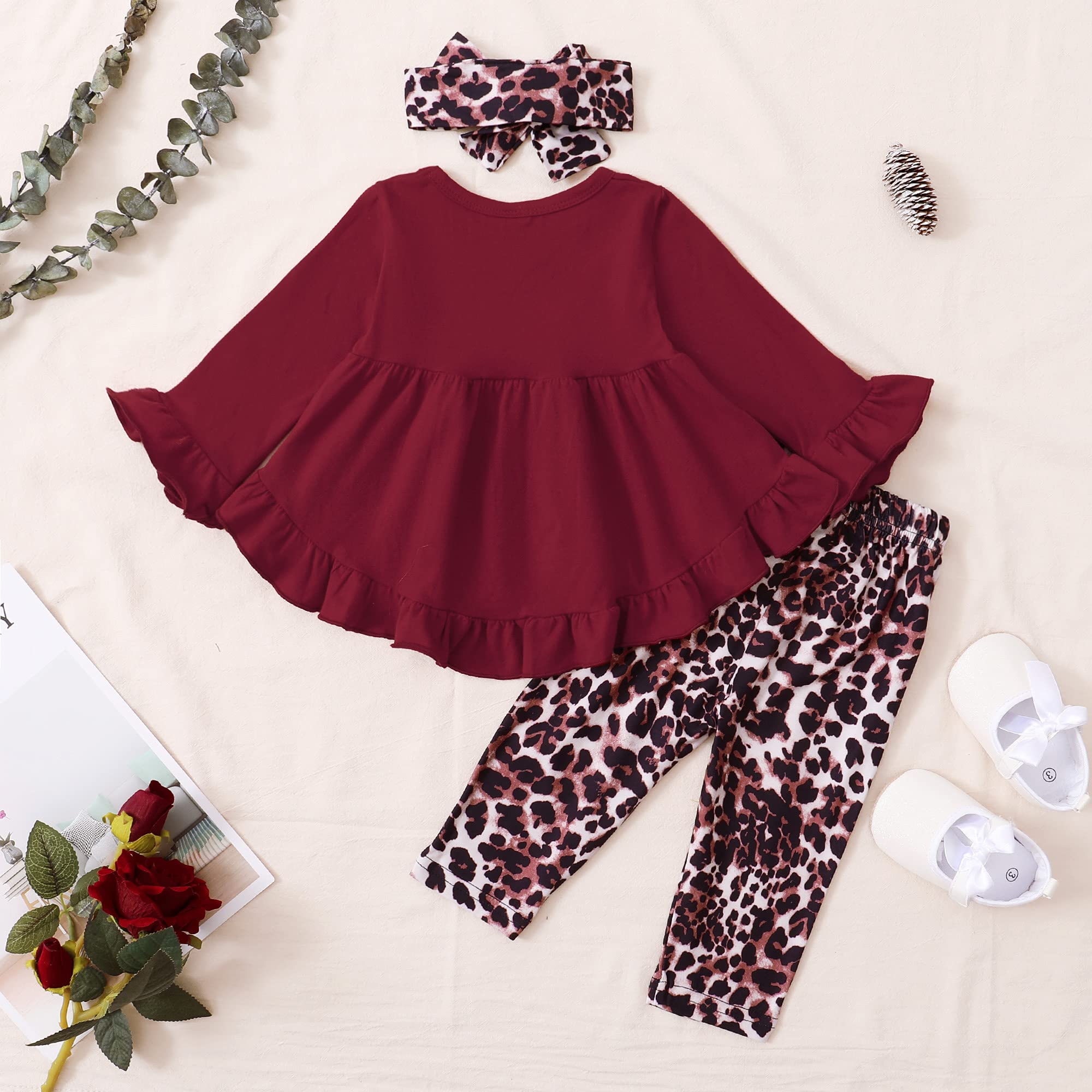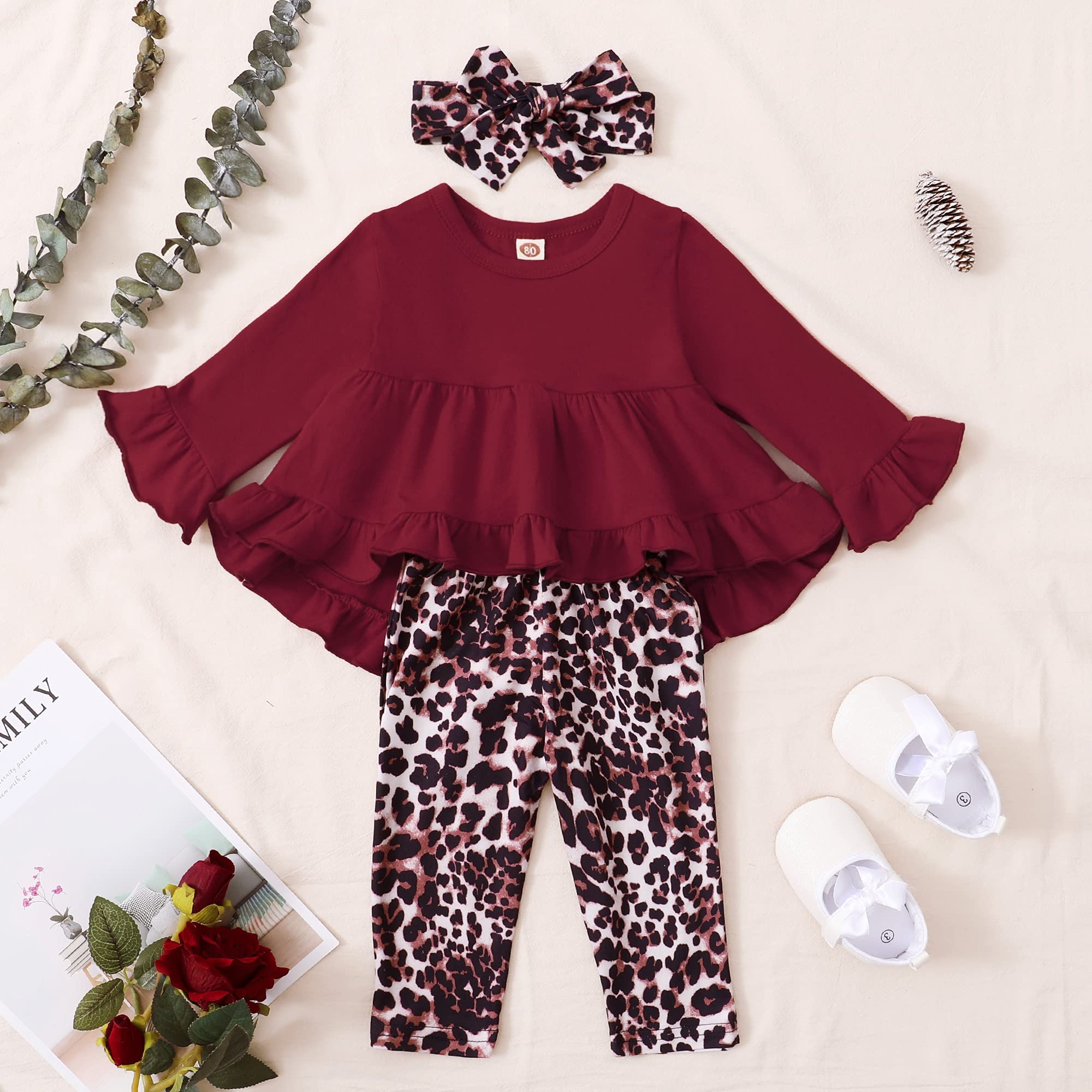 3 Pieces Toddler Little Girl Outift for Fall Winter: 1pc baby girl shirt + 1pc baby girl pants + 1pc untied headband