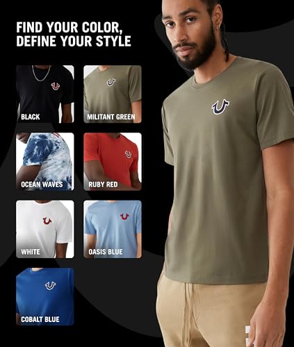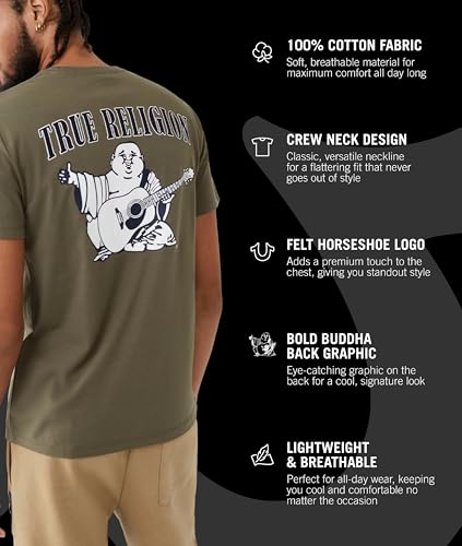 Description The True Religion Men’s Buddha Logo Crew Neck Tee Shirt is a wardrobe essential in t shirts for men, combining comfort, quality, and iconic style. Crafted from 100% cotton, this tee is lightweight, soft, and durable. With a classic crew neck and short sleeves, it offers a reliable fit that works for every occasion. Featuring a horseshoe chest logo and bold Buddha back graphic, it delivers distinctive style compared to ordinary graphic tees for men. Perfect as an everyday essential, this tee pairs effortlessly with jeans, joggers, or layered under a jacket. True Religion is known for mens t-shirts that balance durability and standout design, and this one is no exception. Available in multiple colors and all sizes, it’s built to be worn on repeat.