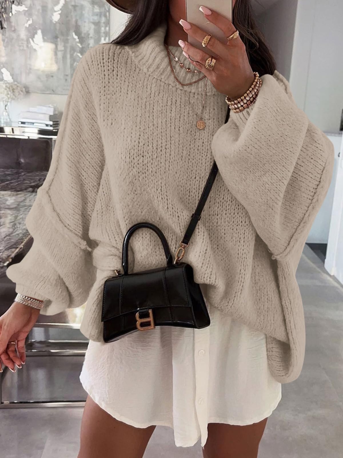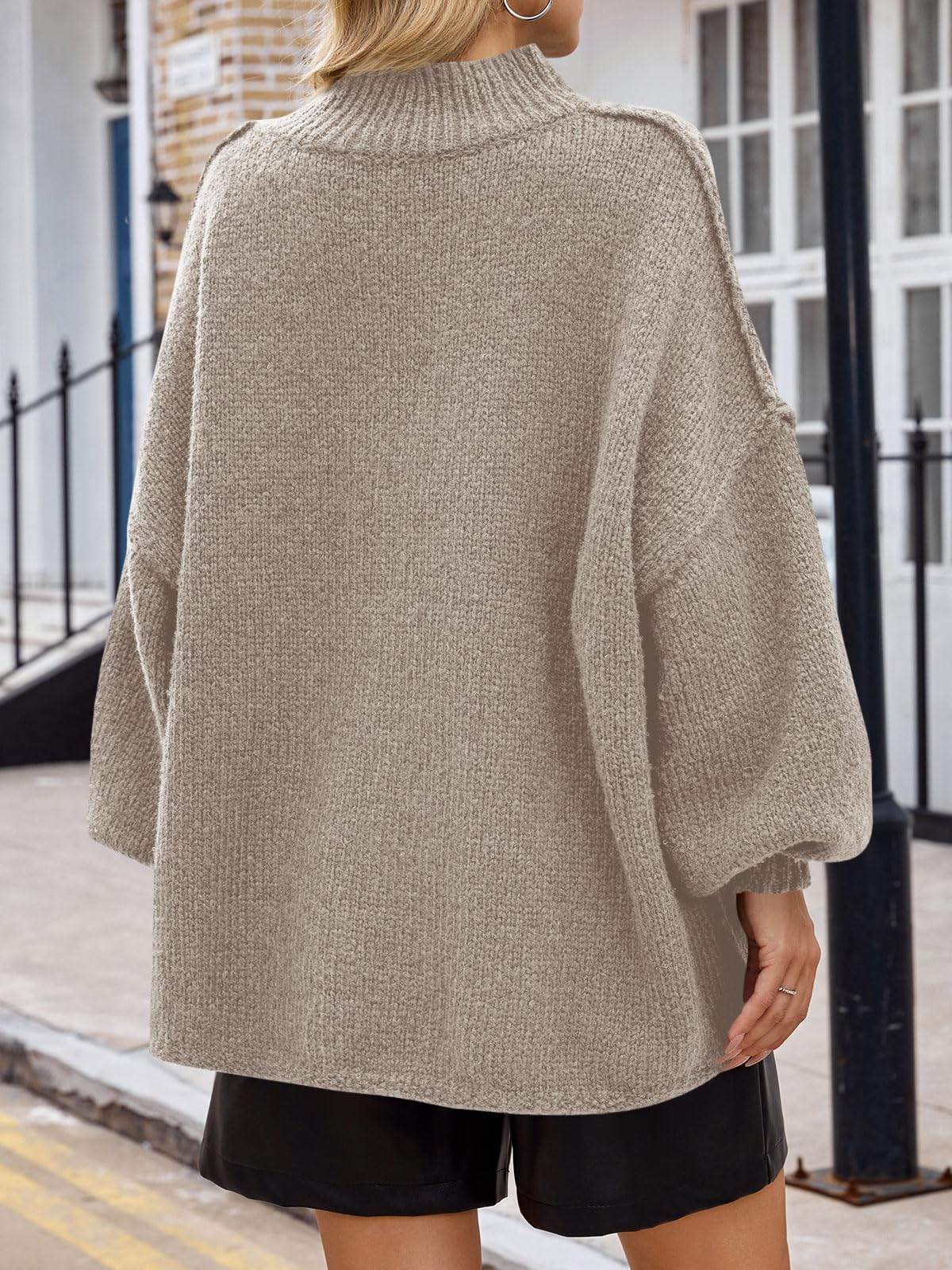 Features: Ribbed knit fabric, batwing long sleeve, mock neck, drop shoulder, casual style. The batwing sweaters for women is good for early spring, fall and winter days.