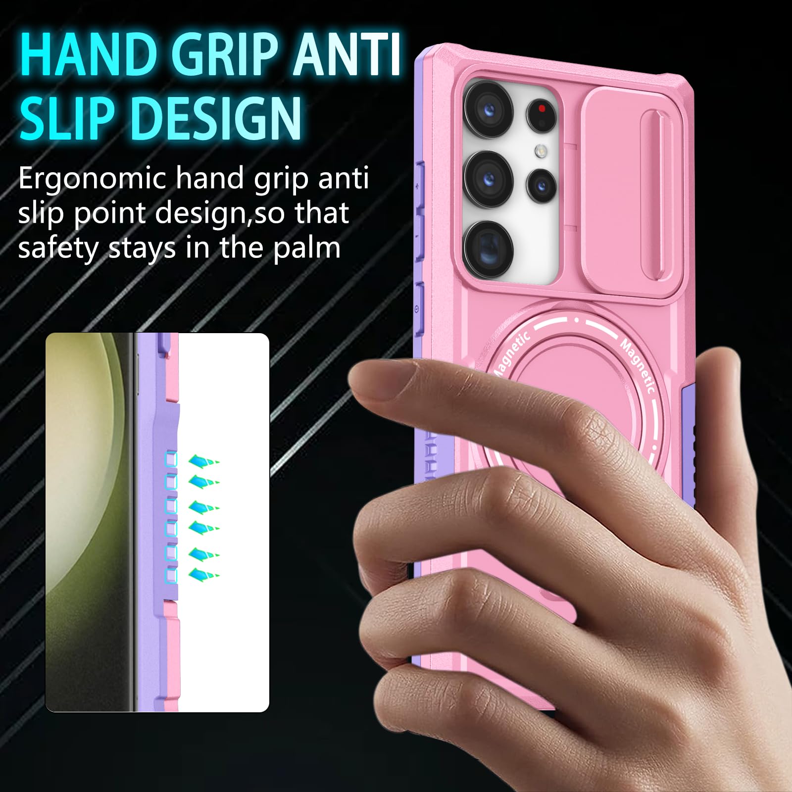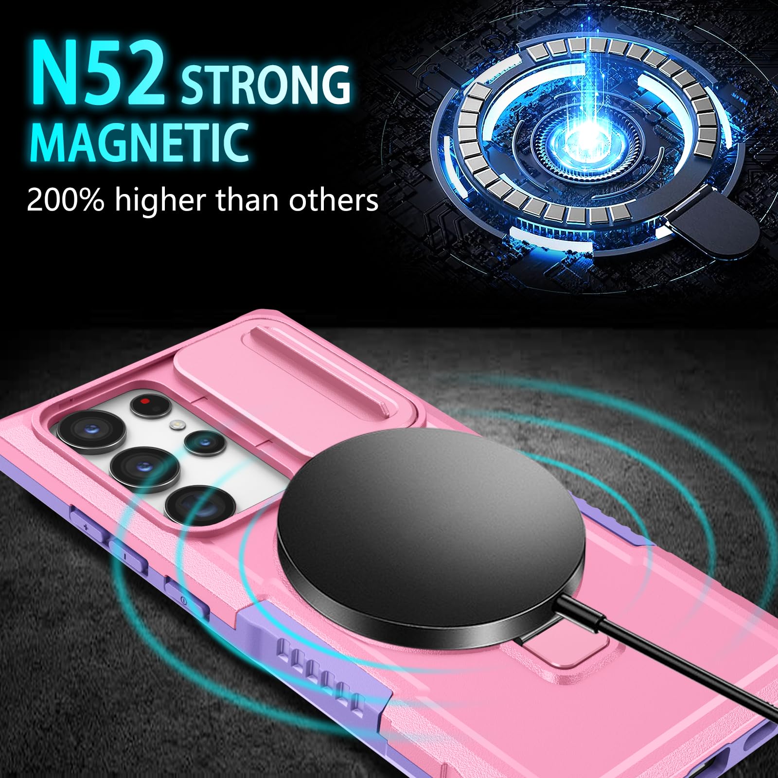 【Compatible with MagSafe】The Samsung Galaxy S23 Ultra case built-in MagSafe function and automatically adsorbs into place with magnetic charging, making charging your phone more convenient and faster. It is compatible with all MagSafe accessories like leather wallets, wireless chargers, battery packs, and car mounts.