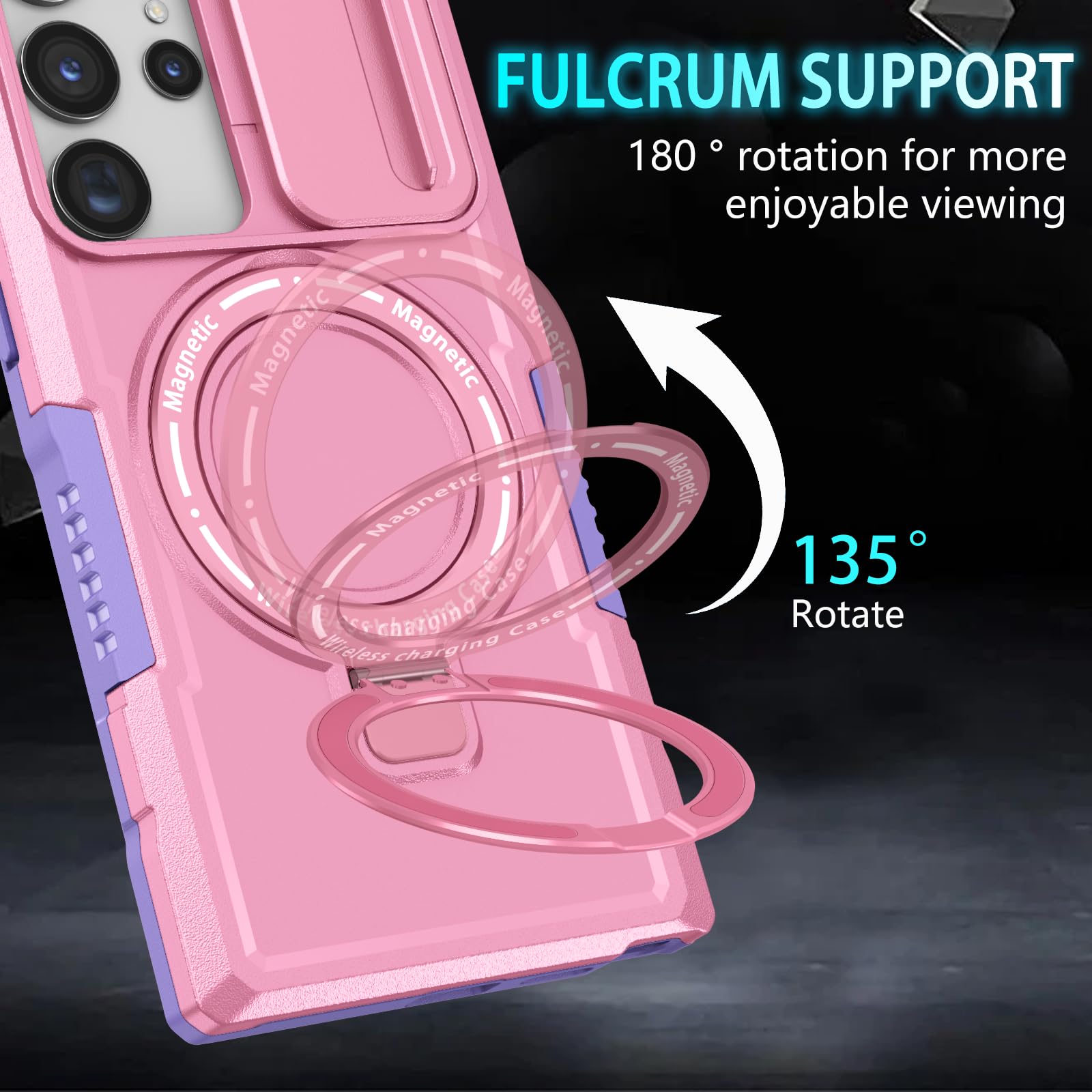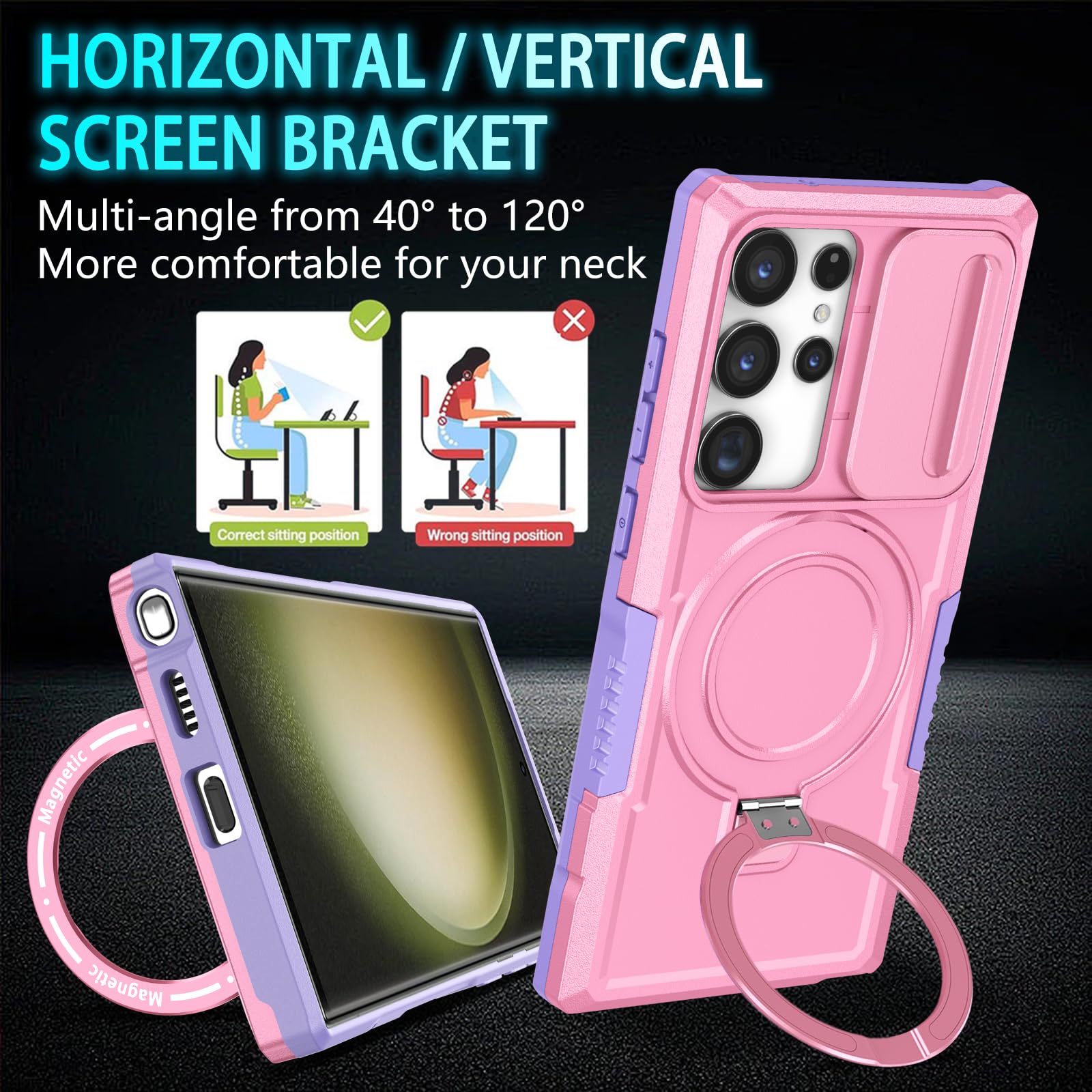 【Magnetic Ring Stand】This Samsung S23 Ultra phone case with magnetic ring kickstand provide two stand modes for vertical and horizontal viewing, can help you keep your hands free when watching web pages and videos. It can also be attached to a magnetic car mount (Not includes the magnetic car mount holder).