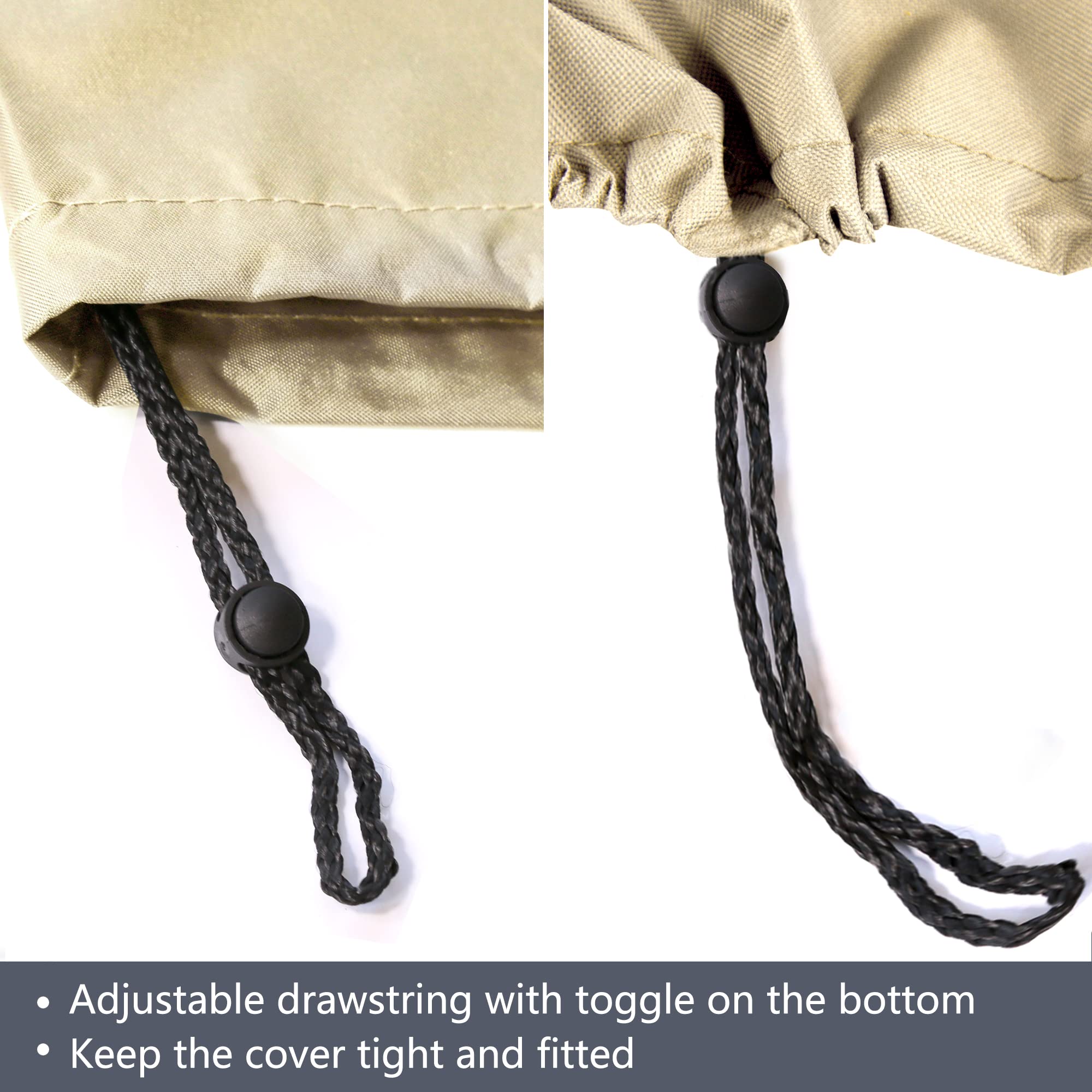 Secure Fit & Easy Storage: The cover features an adjustable drawstring cord and comes with a storage bag for easy storage. The drawstring cord at the bottom of each cover allows for a secure fit, even in windy conditions. The included storage bag makes it easy to store the cover when not in use