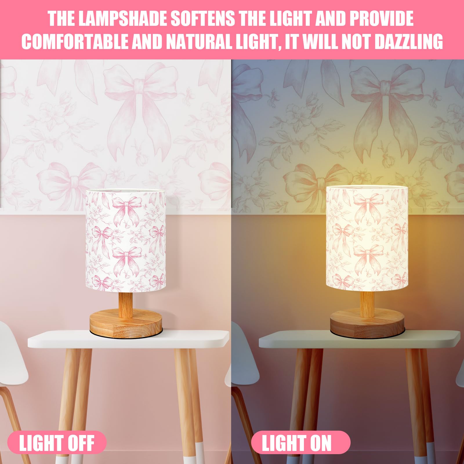 Practical Gift Choice: bow lamp makes for a thoughtful and useful gift; Be it birthdays, Christmas, Thanksgiving, housewarming, or just a delightful surprise for your little ones, partners, families, this nightstand lamp makes for a nice addition to their space